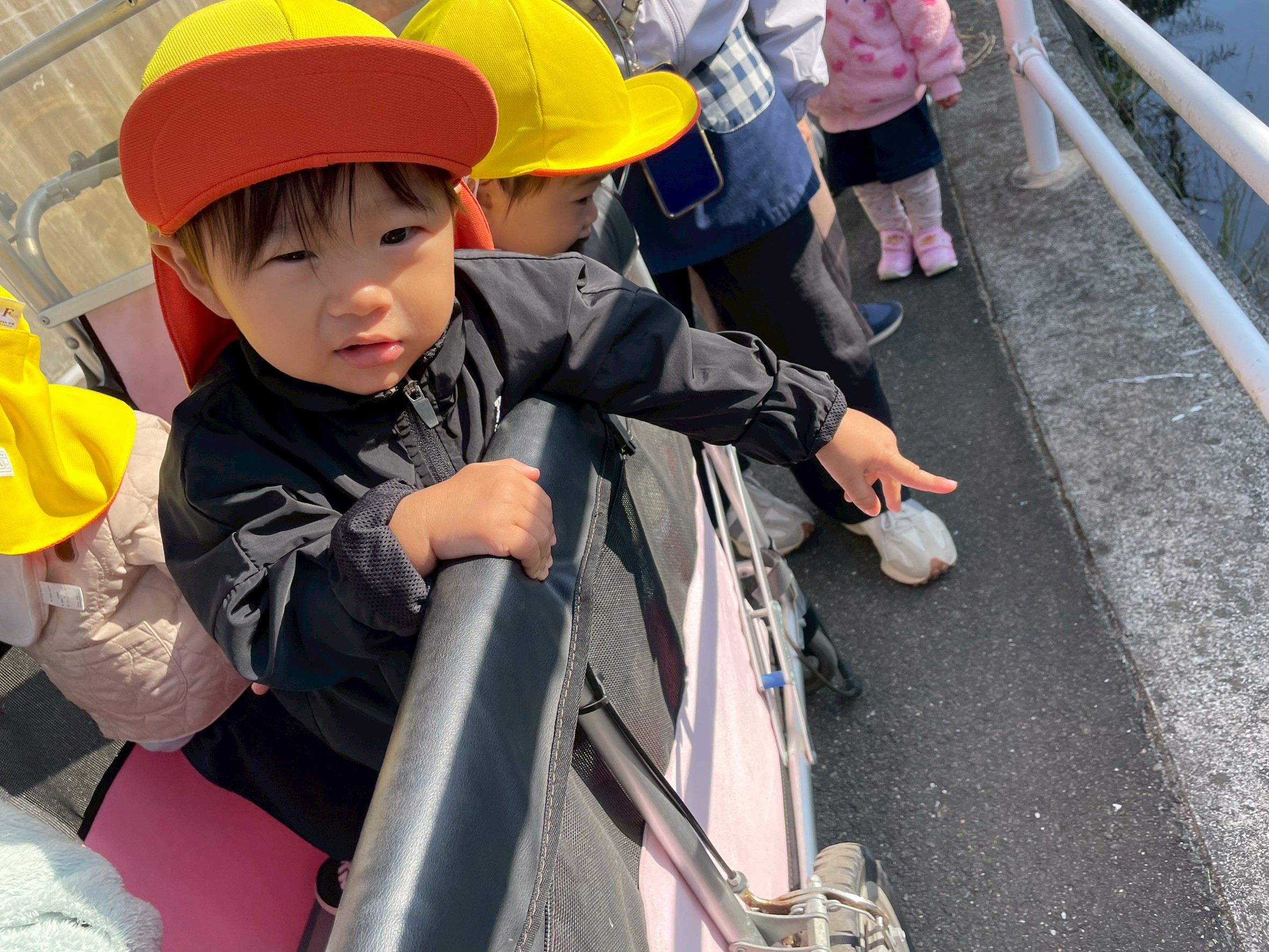 川の横を歩いていると大きな鯉が泳いでいて、みんなで「いたー!」と嬉しそうにじーっと観察していましたよ✨水分補給をしてからは、みんなでかけっこをして体を動かし、そのあとも奥まで進んでお散歩を楽しみました😊