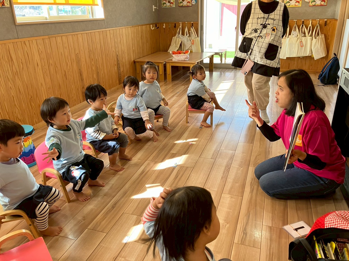 その後こあら、きりんさんは、「ブレーメンの音楽隊」を保育者に読んでもらい、集中して見ました🎵
