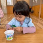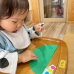 今日は発表会の練習からスタートし、製作のシール貼りもしましたよ😄一人でシールを摘んで上手に剥がせるようになったので、今日は小さいサイズのシールにも挑戦しました💪ちょっと剥がしにくいようだけど、小さな指で集中して取り組んでいましたよ😊
