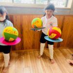 今日は最初に月製作の仕上げをしました🐇。『わたしのワンピース👗』の自分達のお顔にうさぎの耳と手と足をクレヨン🖍️で描きました。みんな上手に耳、手、足を描く事ができましたよ👏。その周りに柄のシールを貼って模様をつけて仕上げました😄 可愛いワンピースに仕上がりました🌸。