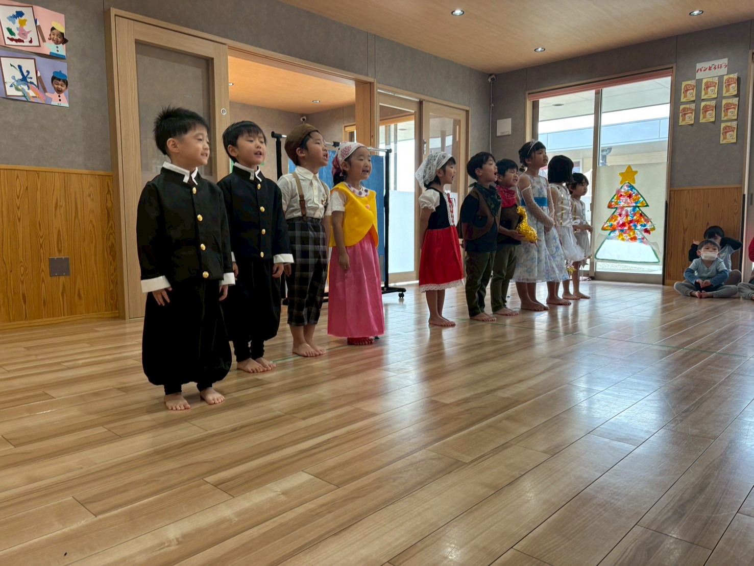その後は全体で発表会の練習をしました!最初は少し緊張していた子も、慣れてくると笑顔で踊る姿が見られましたよ☺️また、以上児さんの劇も集中して最後まで見ることができ、子どもたちの成長を感じる1日となりました🤭🤍