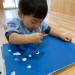 今日は冬の雪だるま製作をしました⛄️「雪だるまをつくろう!」と声かけすると「つくる!」とやる気満々のりす組さんでした😄お花紙をにぎにぎ〜と丸めてラッピング袋に入れて一生懸命できました!指先を使って作ることも本当に上手なってきていますよ💗
