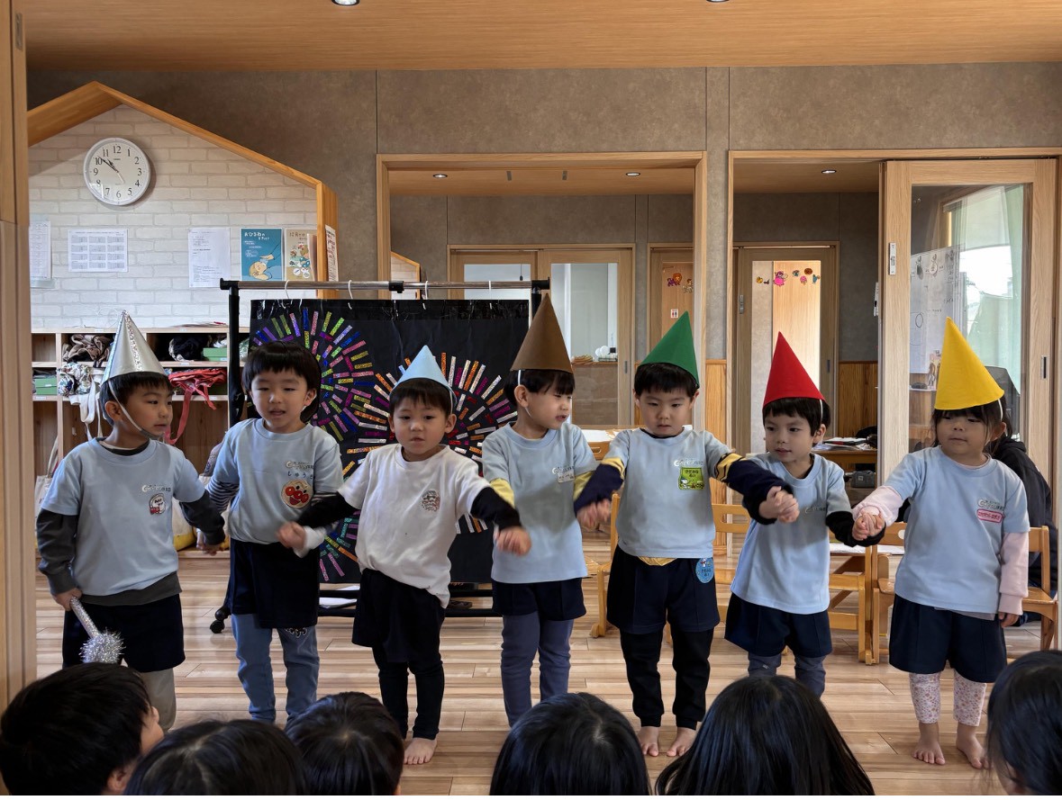 今日も発表会の練習を頑張りました😆りす組さんに見てもらい、衣装の帽子もちゃんと被って踊ることができましたよ❣️