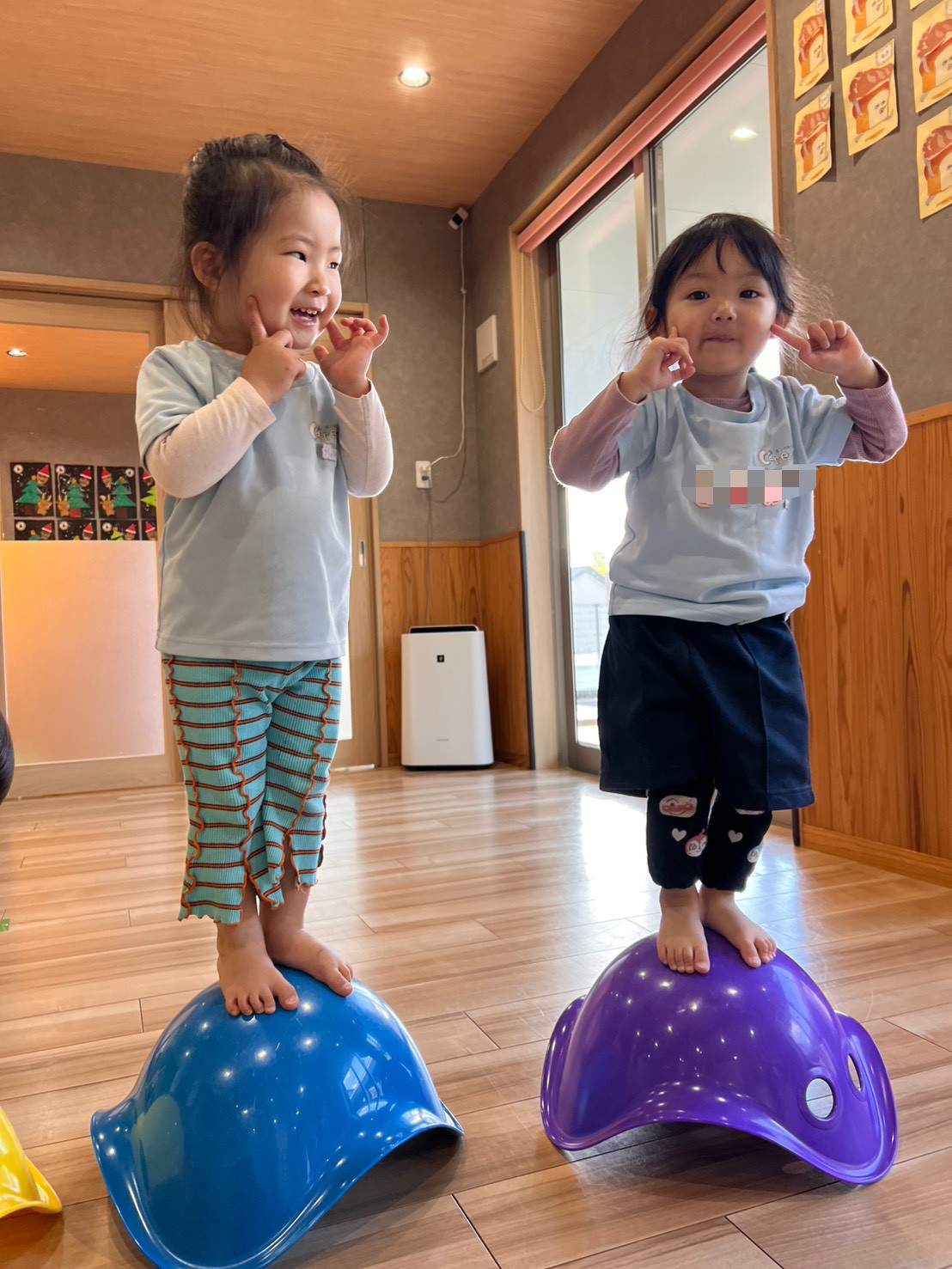 トランポリンやビリボ、すべり台、平均台、トンネルなど、いろいろな遊具に触れながら思い思いに体を動かして楽しんでいました✨