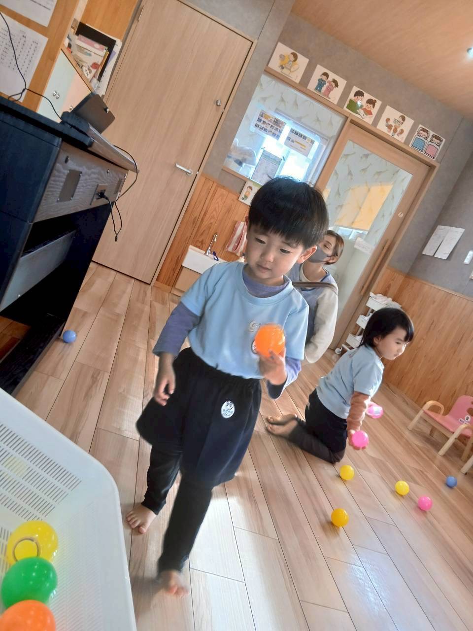 そして、その中に出てくる物のリズムを聴いて、そのイラストが貼ってあるボールを探すという活動をしました🎅🎄