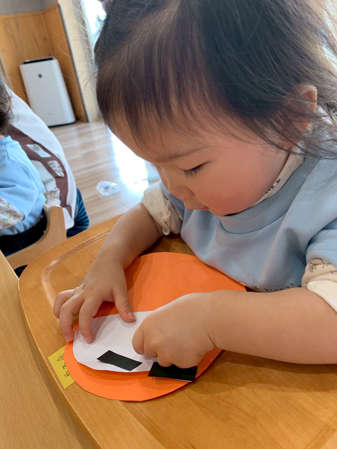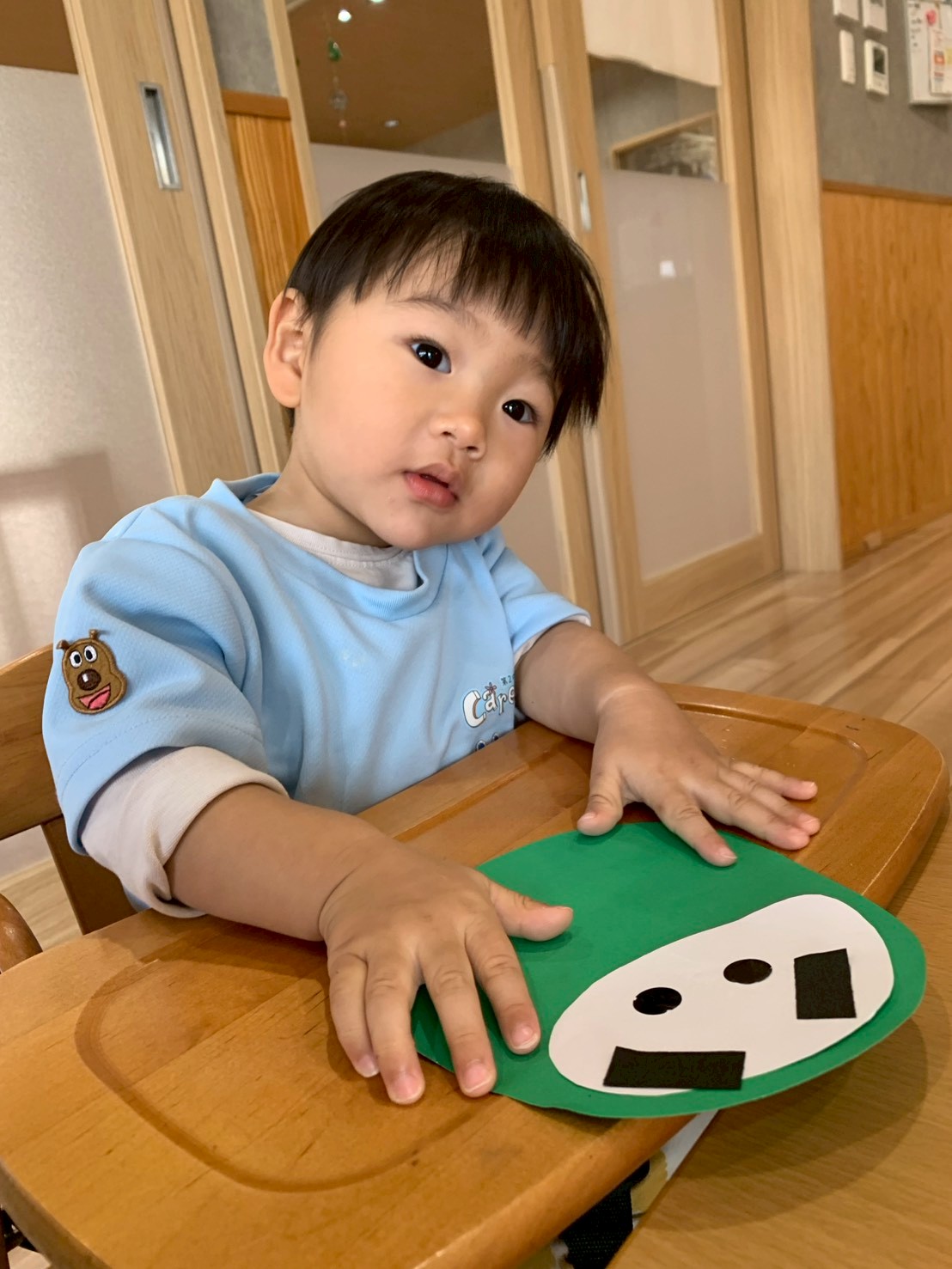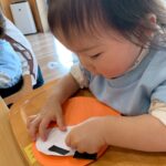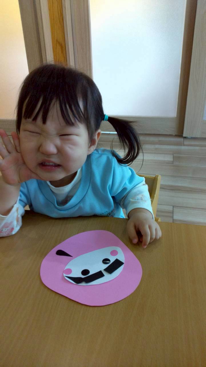 今日はひよこ組さん🐥と一緒に「だるま」製作をしました!大好きな「だるまさんが…」の絵本を体を揺らしながら見てやる気満々で作り始めましたよ😄顔のパーツシールを1枚ずつ自分なりのイメージで貼ってとってもかわいい表情のだるまさんができました✨先生に自分のだるまさんを満足そうに見せてくれたりお部屋の窓に飾ると嬉しそうな子ども達でした💕 いろいろな遊びの中で指先を使ったシール剥がしやシール貼りも上手くなっていますよ👏その後は園庭で砂遊びわしたりかけっこしたりのびのび!元気に過ごしました🌞ぱんだ組