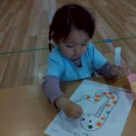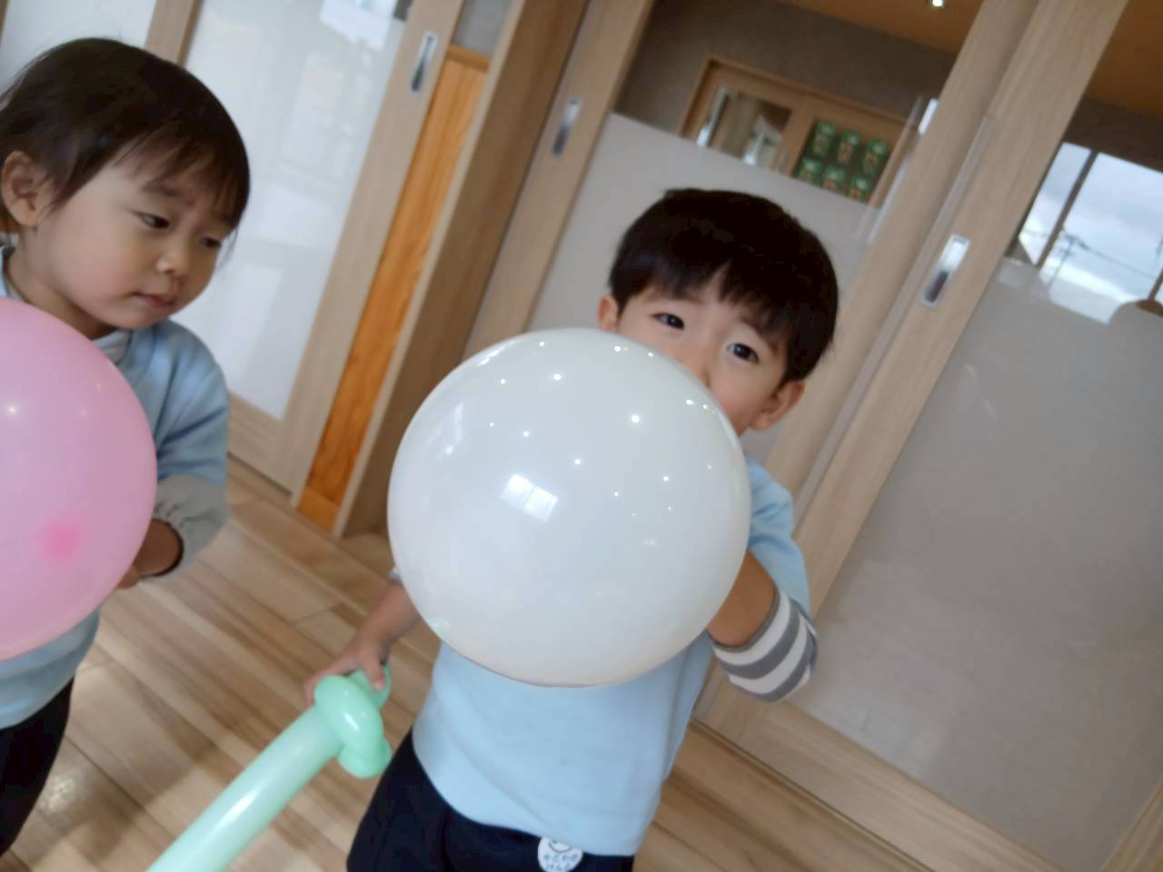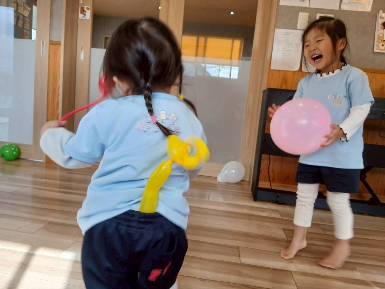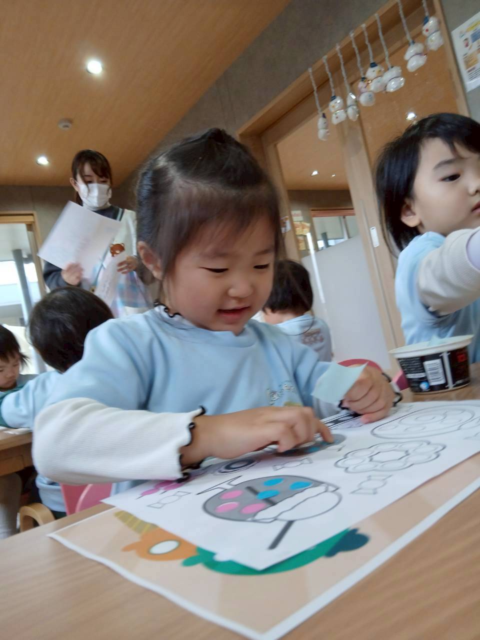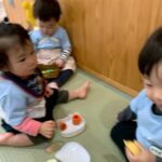 英語教室の後は線のプリントやシール貼りをしました。 美味しそうな食べ物にシールを貼ったりひらがなにもシールを貼りシール遊びも楽しむ事ができましたよ最後は風船🎈を使い上手に飛ばしたりアタックしたり、体をうごかしていきながら年内最後の遊びを楽しんだぱんだ🐼ぐみさんでした。