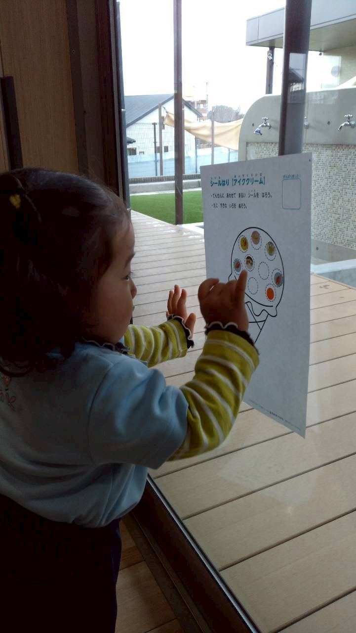 今日はシール遊びをしました✨みんなの前で1人ずつシール貼りの⭕️の箇所を確かめながら貼ると拍手👏をしてもらって「できた!」とにっこり😄嬉しそうでした💕それぞれが好きな絵用紙を選んで丁寧に貼ってからクレヨンで色ぬりやお絵描きもしてアイスやヘビさん、果物ができあがりましたよ✨その後はお部屋でボール遊びをしました🏀