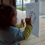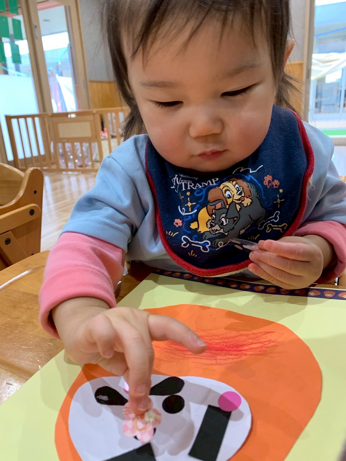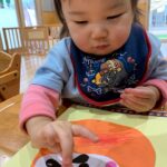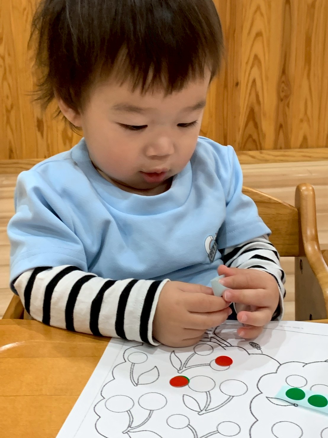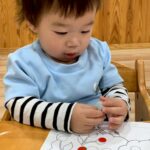 今日は先日製作した「だるま」の仕上げでお花のシールを貼りました🌸お花のシールが少なかったので貼り足りないようなひよこさん達😄さくらんぼ🍒の絵の用紙に、丸いシールをたくさんペタペタ貼って大満足😆
