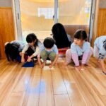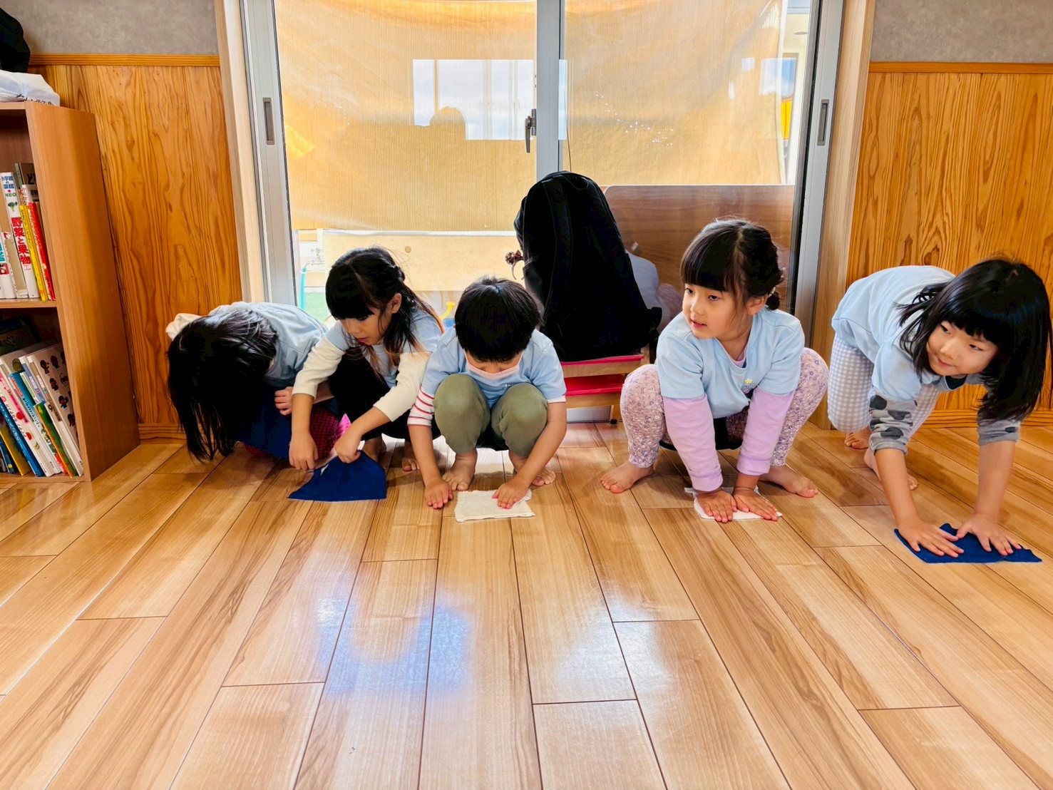 最後はウィンターソング🎵を振りつけながら踊り、楽しんでいました🎶今日は年内最後の子も多かったのでみんなで大掃除🧼をしています💕雑巾絞りから頑張りましたよ🥰椅子や自分のロッカー、窓、壁など掃除していき、並んで床を雑巾掛けしたりしてます😁頑張った証の雑巾の汚れを嬉しそうに見せていました🤣🤣