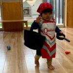 エプロンを着けとり、バンダナを頭に巻いたり、バックを持ってお買い物していたり、キッチン台で洗い物をしているお友だちも❣️お家のママの姿をよく見ているのですね😃とっても小さなかわいいママでした🙋🏻♀️