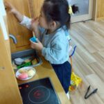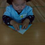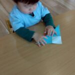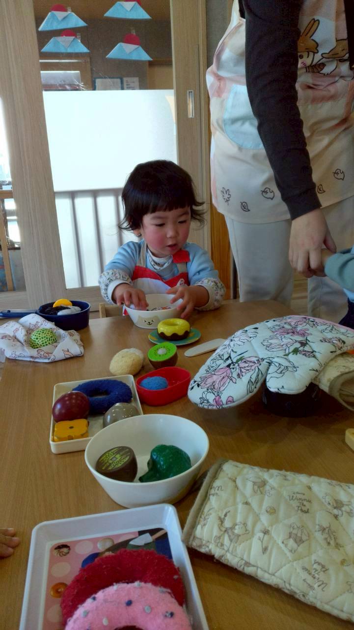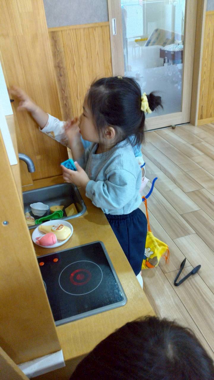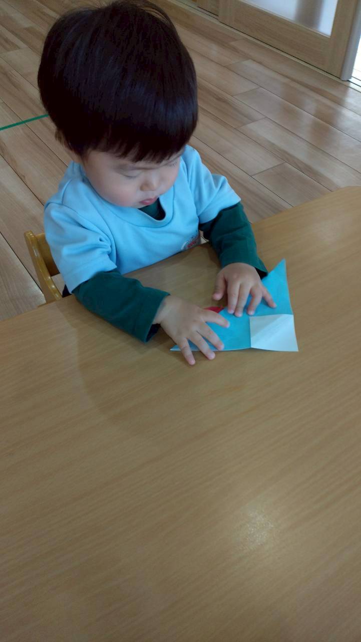 今日は折り紙遊びをしました✨先生のお話を聞いて少しずつ折り紙を山折りしたり「アイロンかけて」〜と折り目をつけたりしながらかわいい富士山ができましたよ🗻朝日をつけてオリジナルの日の出になりました😆🌄その後はままごと遊びをしました🍳エプロンを着けてクッキングしたりキッチン台がお気に入りでずっ〜と洗い物に夢中になったり、たくさん遊んで楽しそうでした😄💕