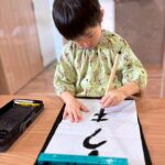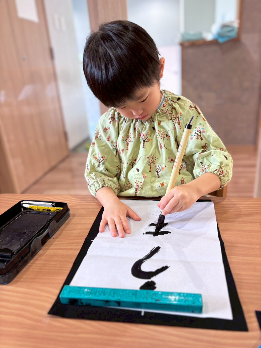 なかなか使う機会のない習字セットに、「たのしー♡」と何枚も描く子どもたち🎶