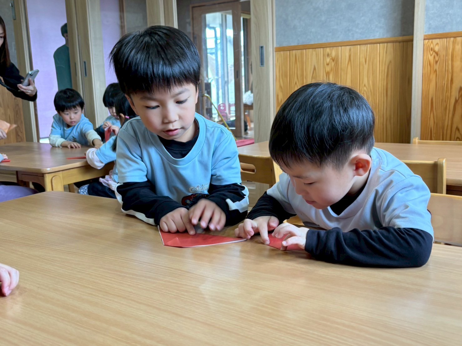 赤い紙に目や鼻、口など貼っていき可愛らしい獅子舞が出来ましたよ🤗