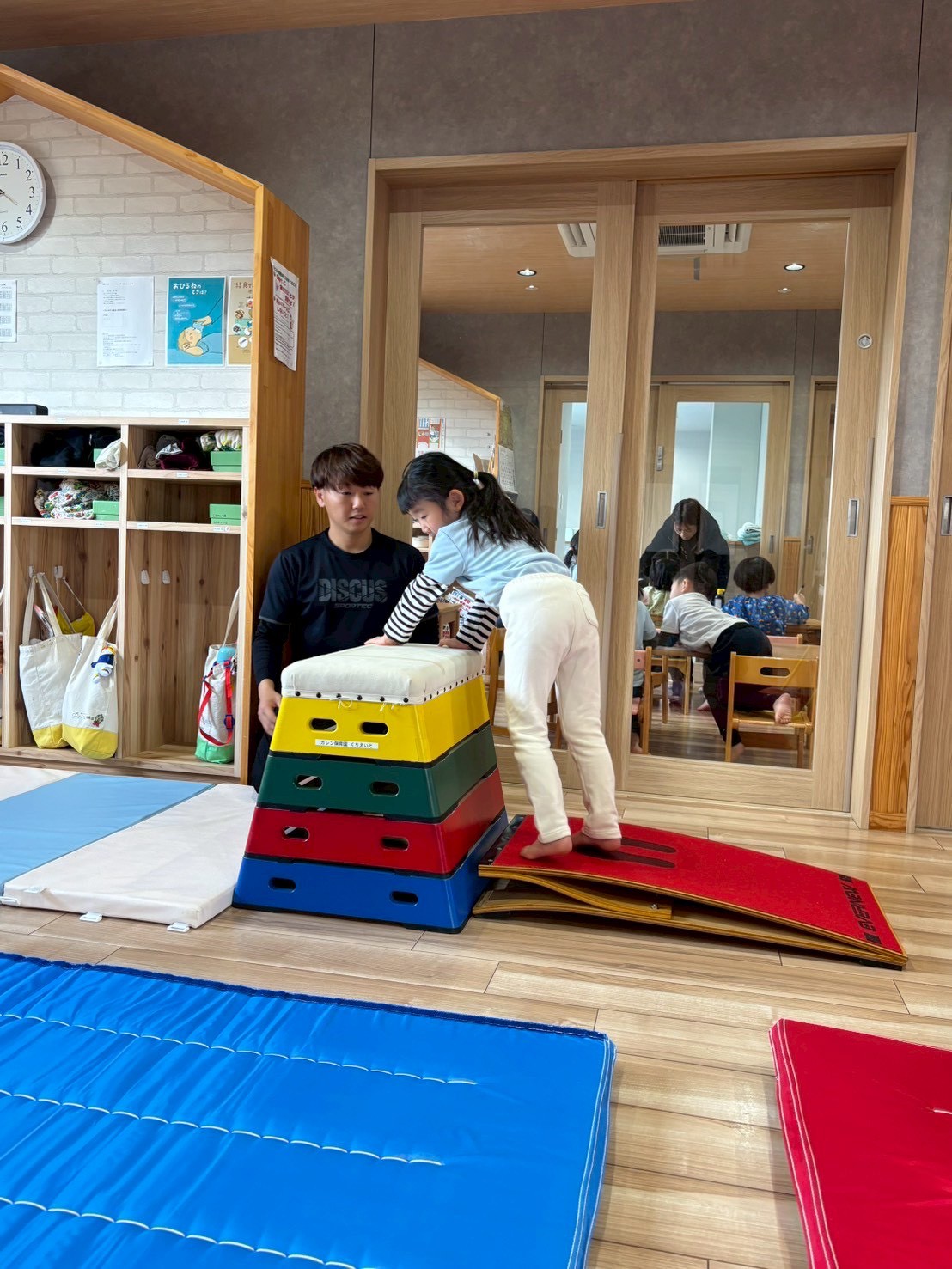 きりん組は、マット側転、鉄棒、逆上がり、跳び箱3段4段跳び。苦手なところを意識しながらしました🎶