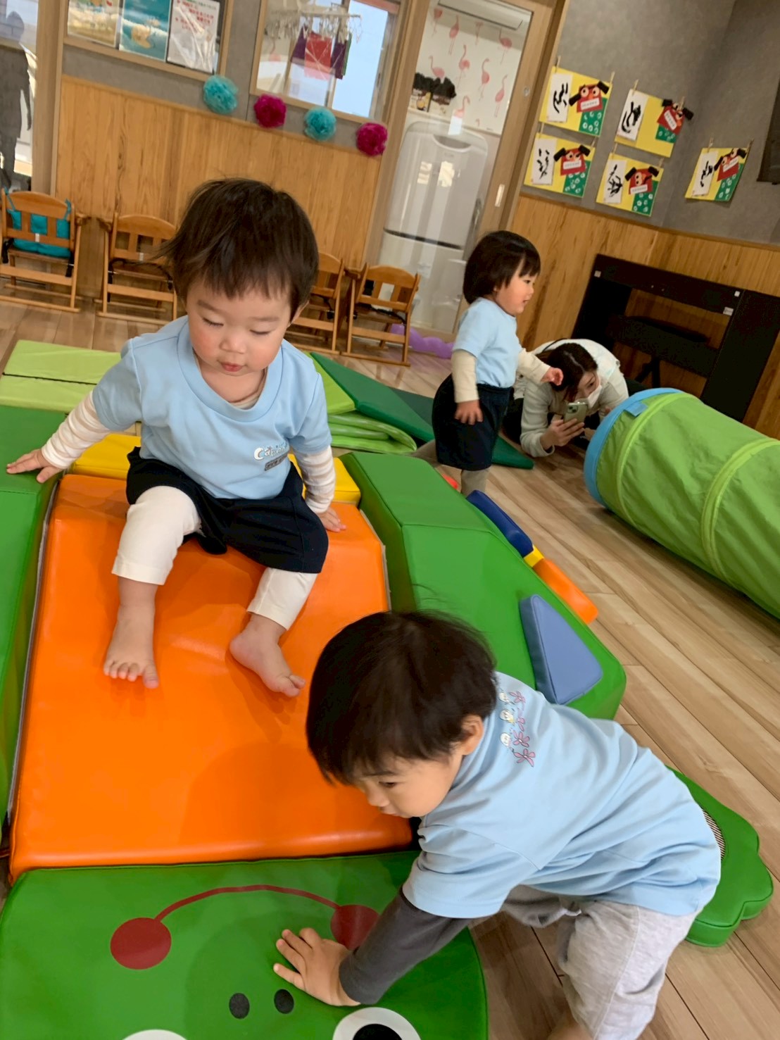 その後はお部屋でプレイマットやトンネルで身体をたくさん動かして遊びましたよ😄