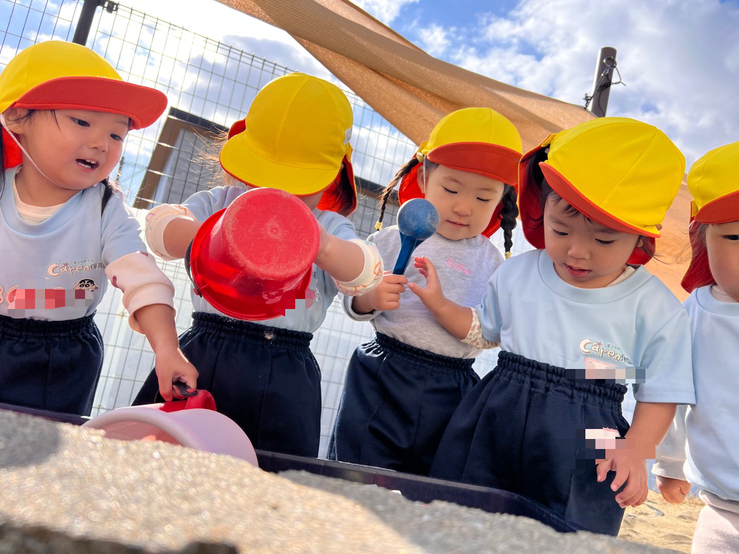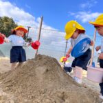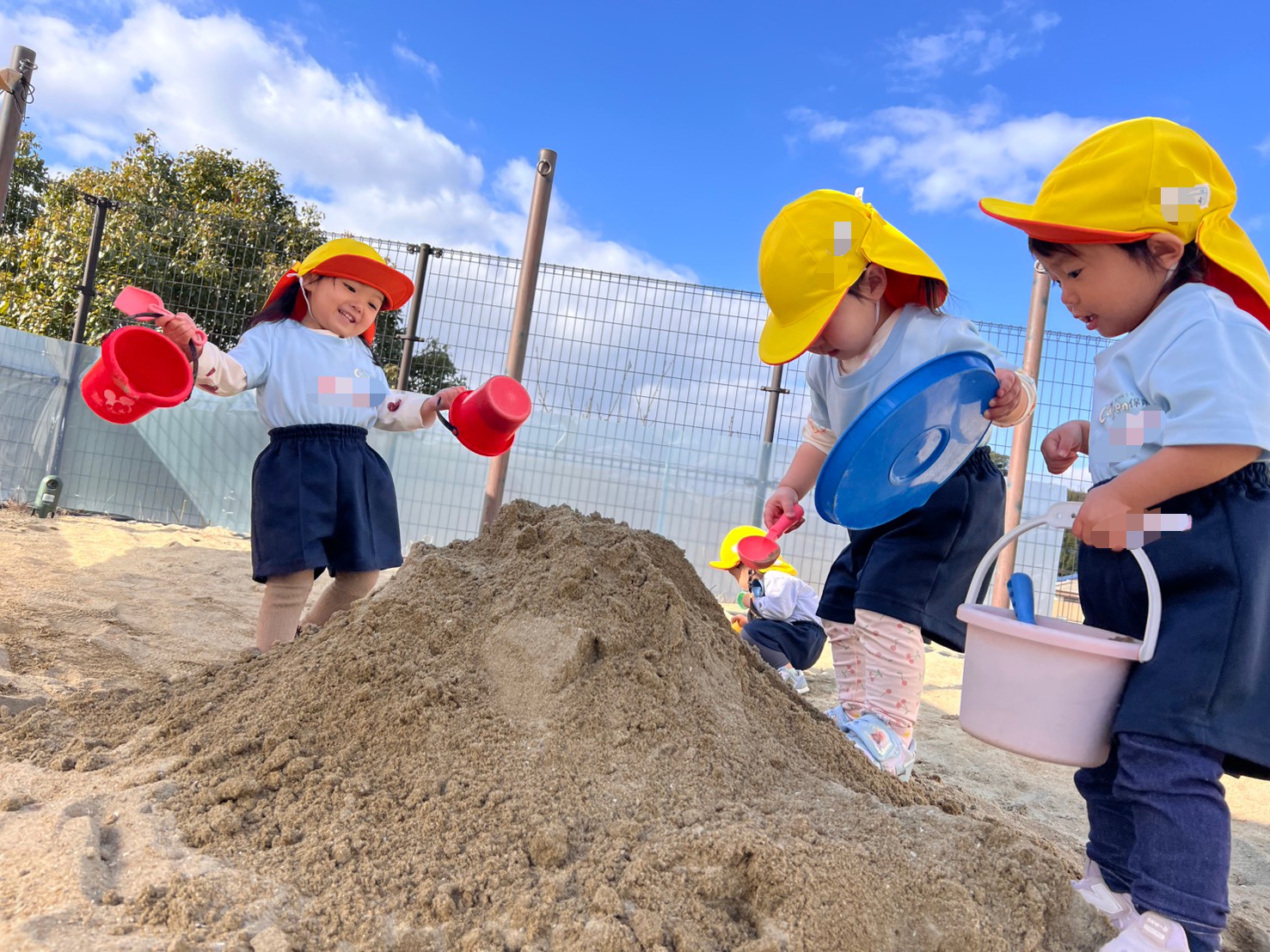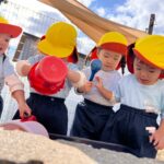 砂場ではお山を登ったり、アイスを作ったり、バケツいっぱいに砂を集めて先生に見せてくれたりと、遊びがどんどん広がっていました🥰