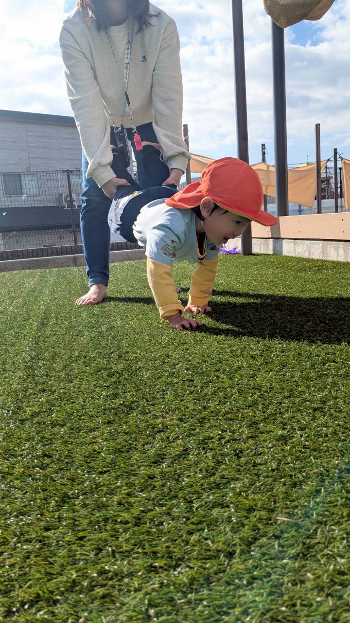 その後、上着を着て園庭で遊びましたよ✨気温は低かったですが太陽☀️の暖かさがあり走り回ったり、ポカポカで遊ぶことが出来ました🥳
