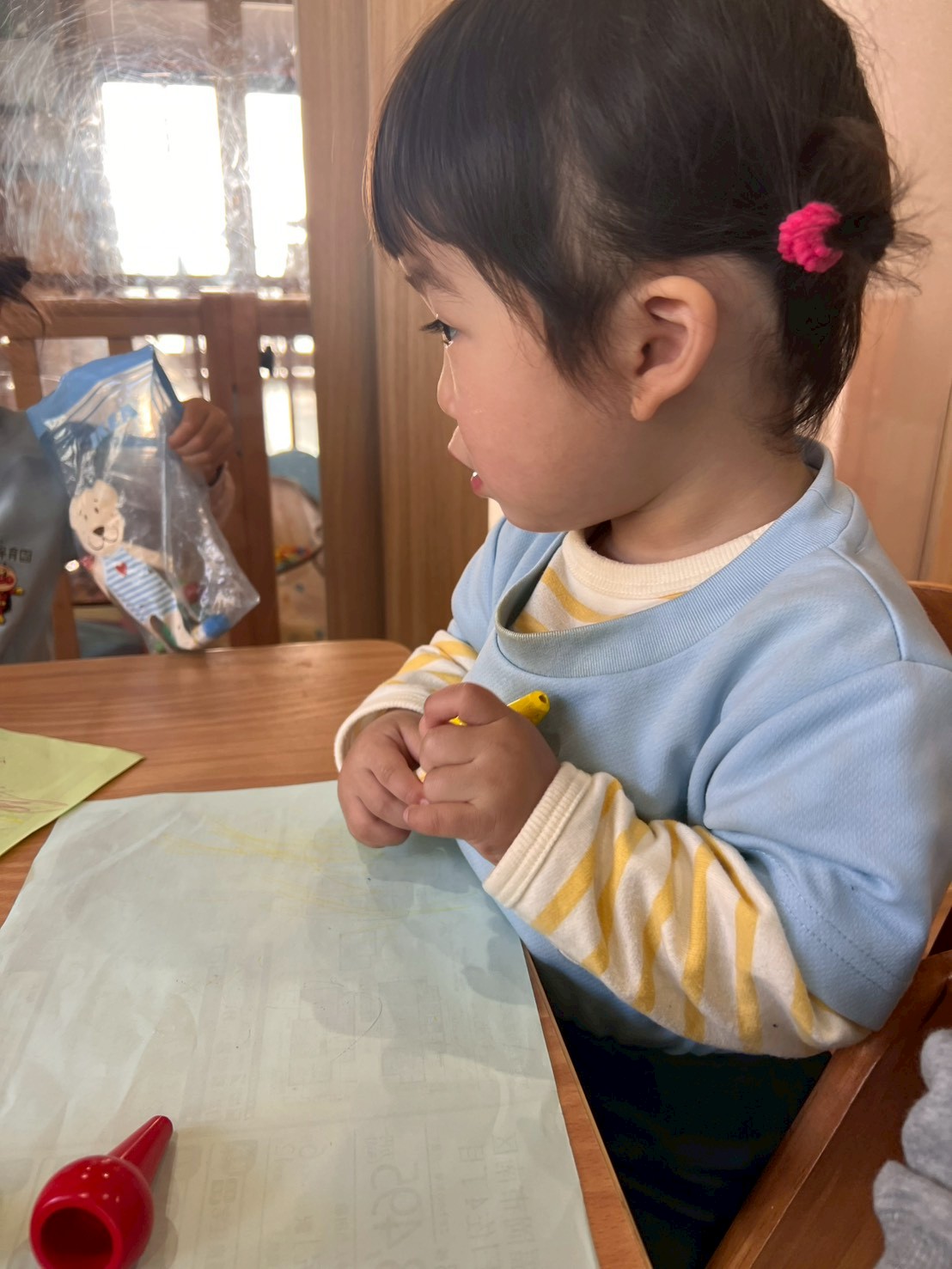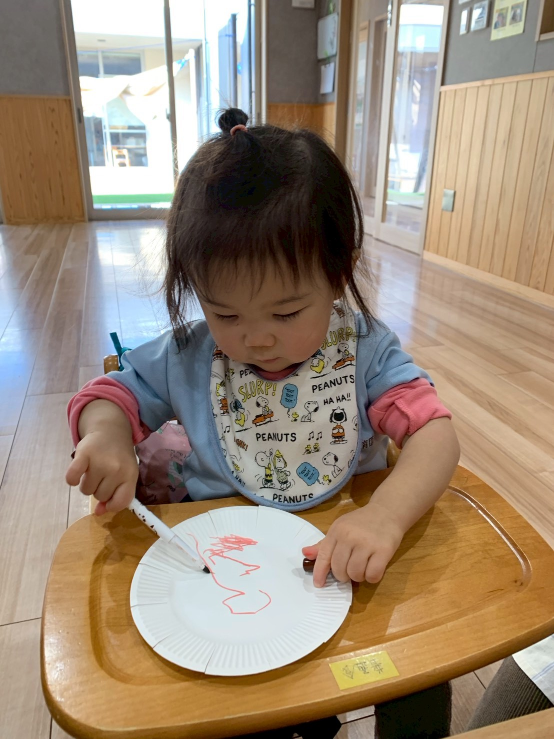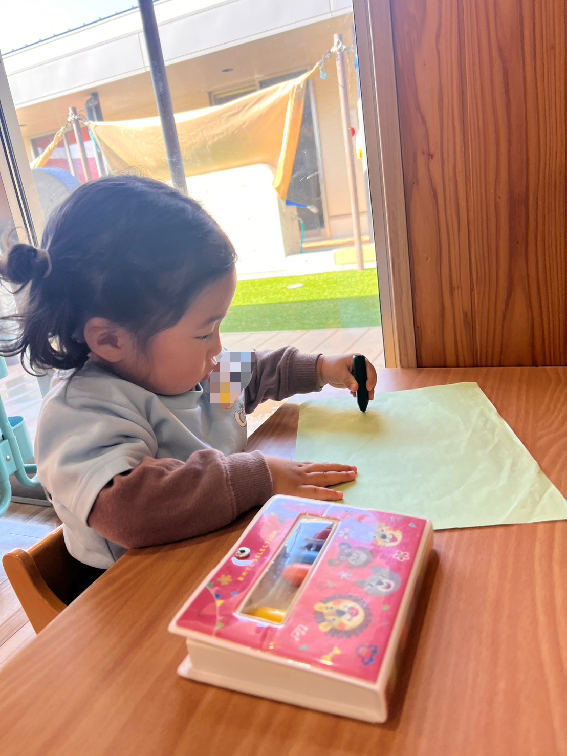 その後はお絵描きがしたいお友だちが居たのでしたい方に分かれてお絵描きを楽しんだお友達もいましたよ!「やってみたい!」気持ちを大切にしながら、のびのびとお絵描きを楽しむ子どもたちでした😊
