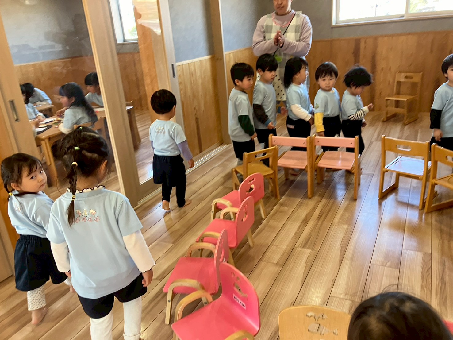 少しですが競争心も見られ、音楽をよく聴いて椅子に座り楽しむ子ども達でした😁✨