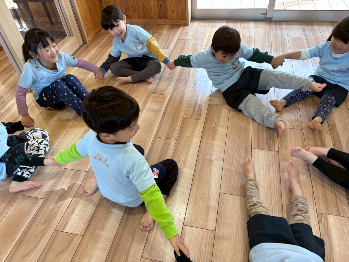 その後、笛の音を聞いて笛の数だけグループを作ったり、協力して動いたりと集団遊びも楽しみました🥰