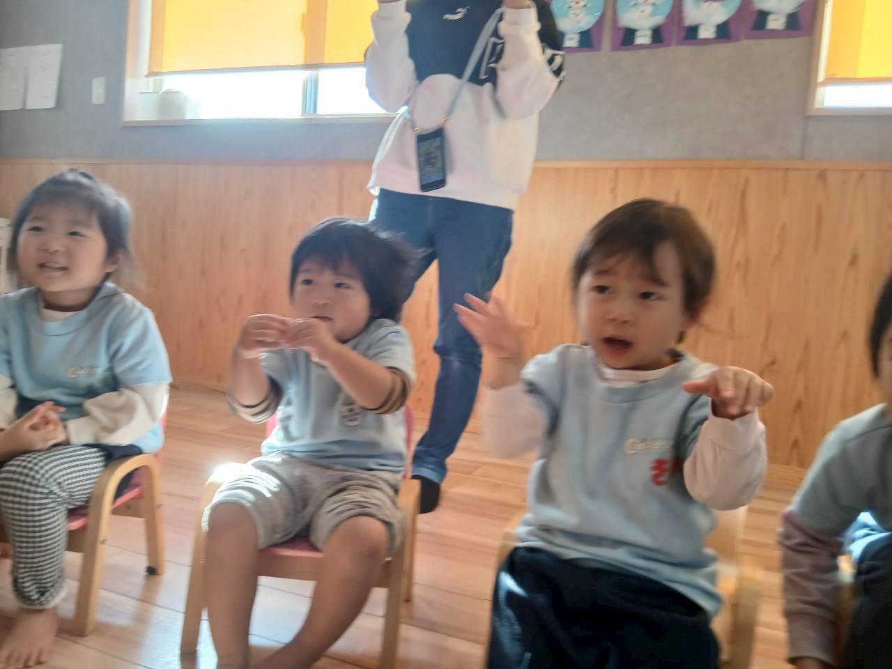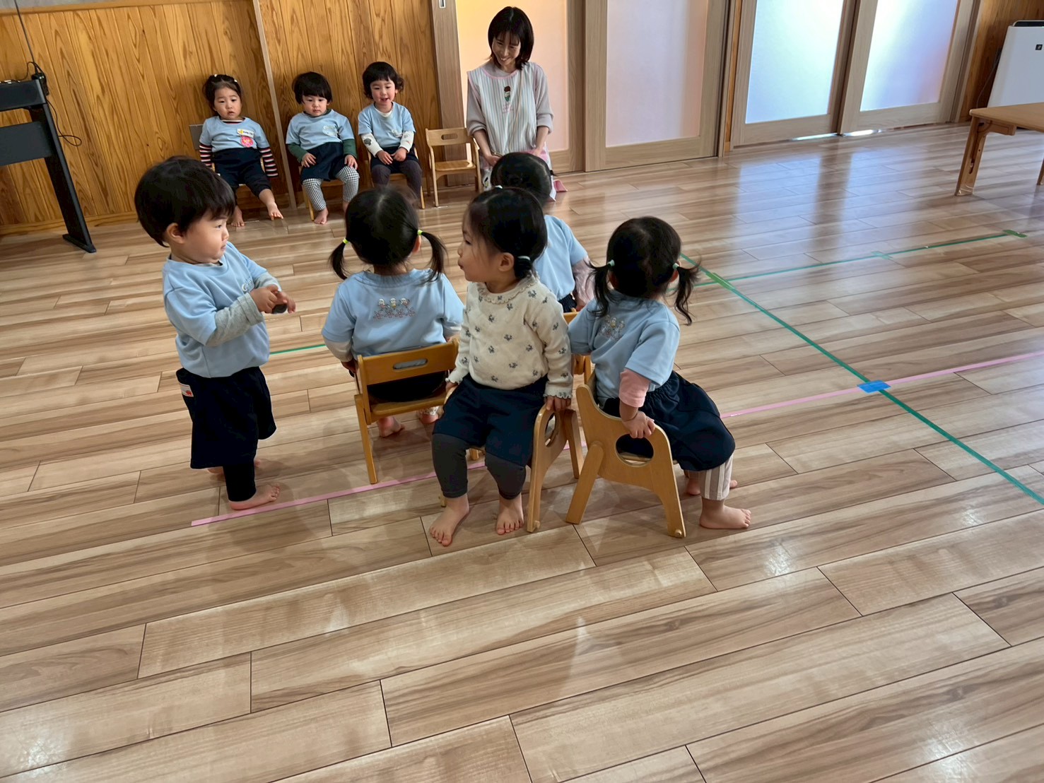 初めての椅子取りゲームにも挑戦し、数回やっていくうちにルールが分かり音楽が止まると座ろうとする姿がよく見られました✨️