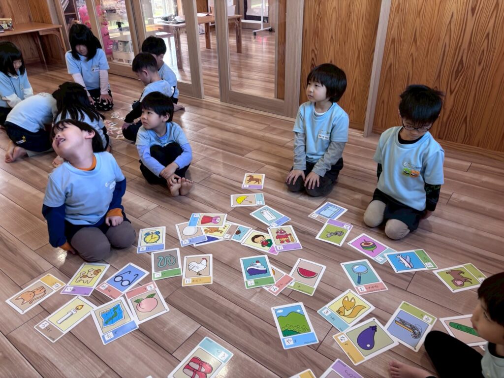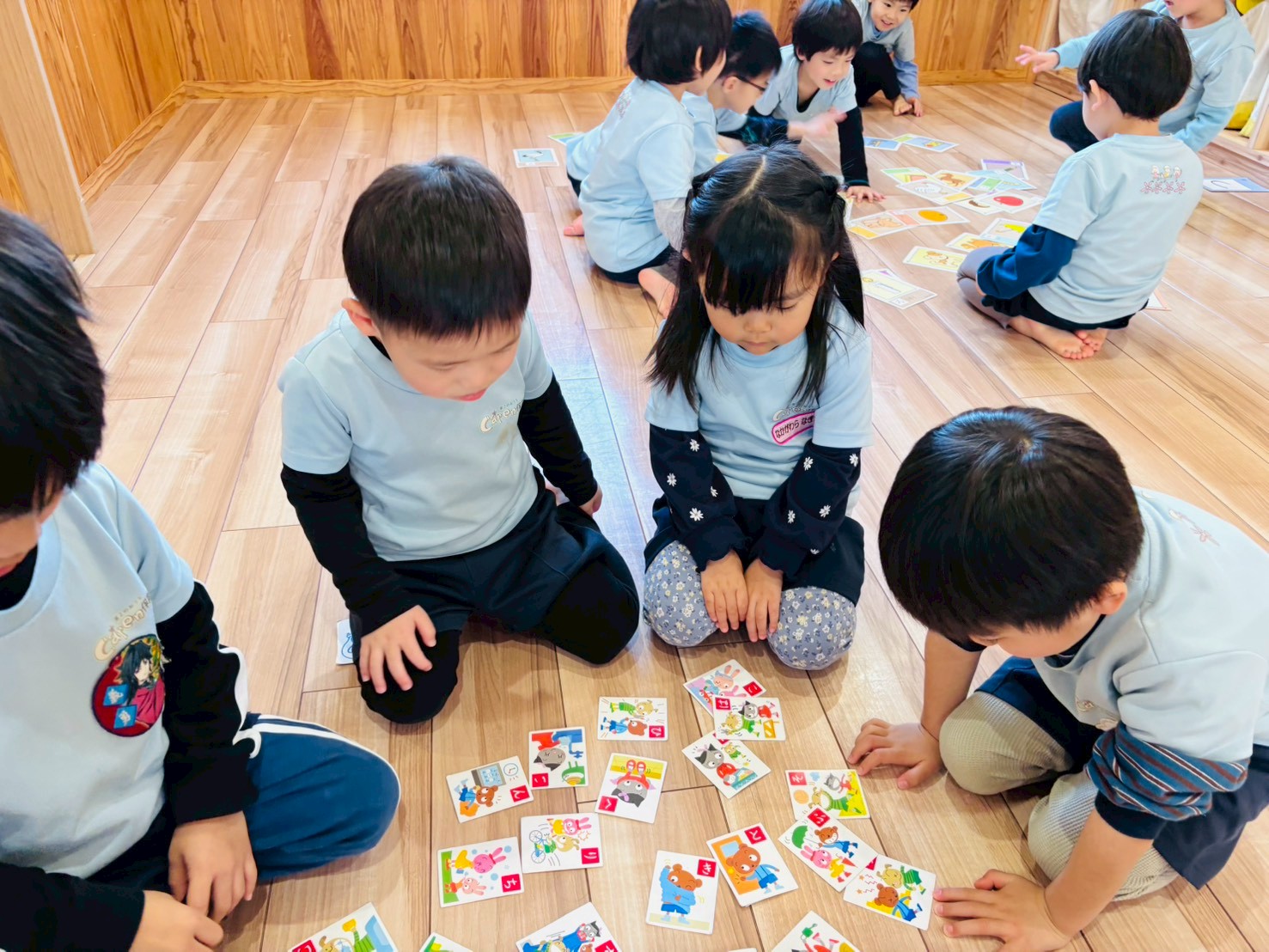 最後は全員でカルタ取りを行いました🥰年齢やレベルに合わせてグループ分けをし、保育者の声をよく聞きながら集中して取り組むことができていました。遊びの中で、聞く力やルールを守る力が育まれている様子を見る事が出来ました☺️