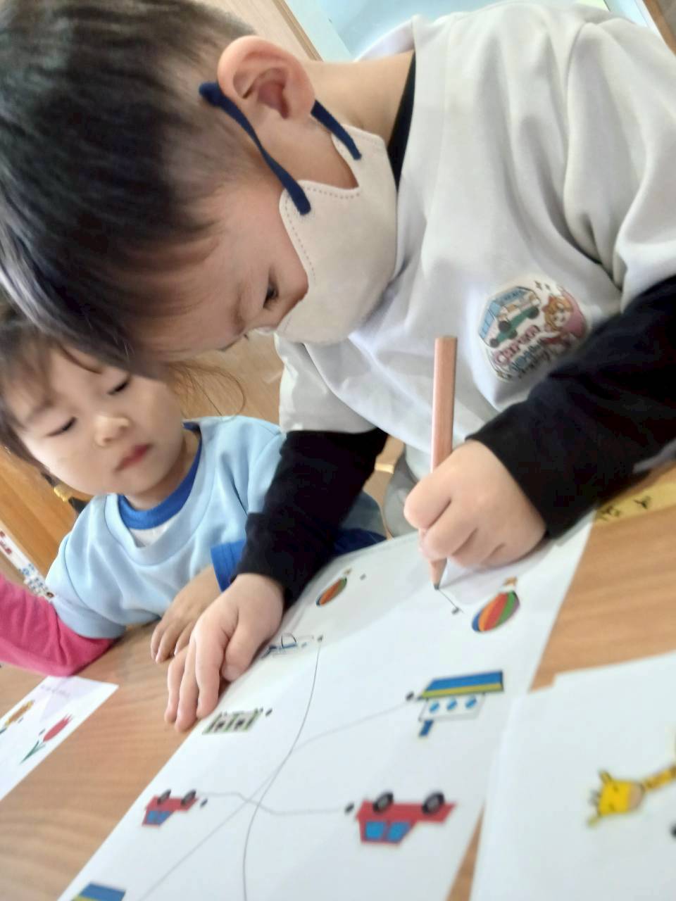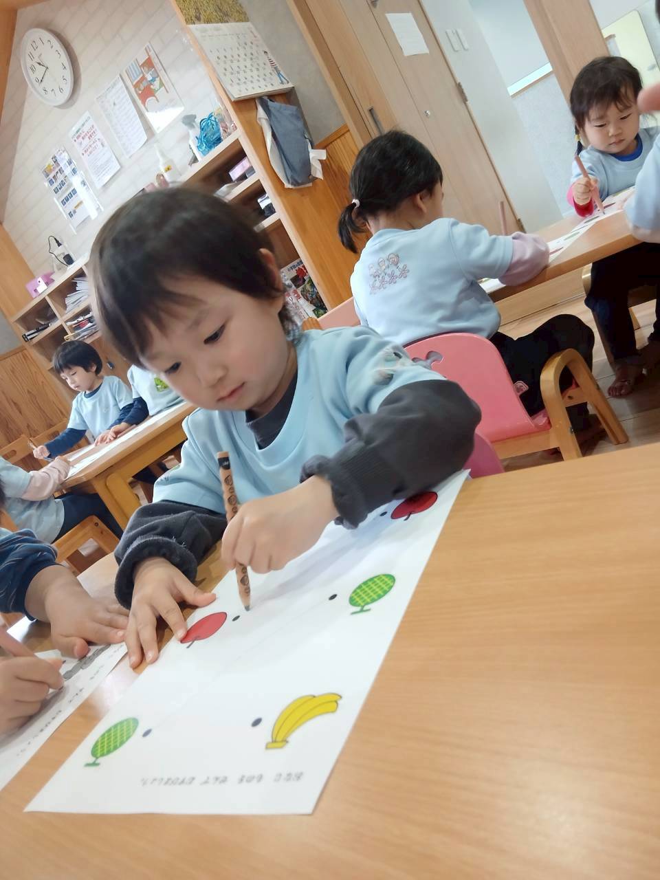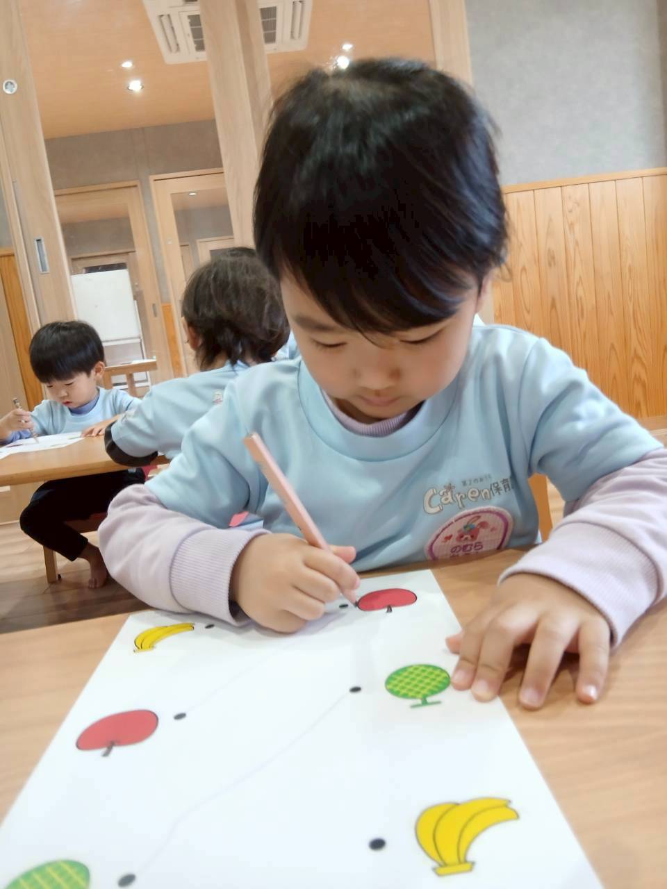 ぱんだとうさぎは同じ仲間を線で結んだり、簡単なめいろをしました🐙🍎保育者の説明をよく聞いて、理解しながら進めることができましたよ🤗
