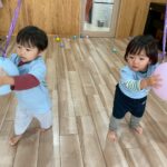 目をキラキラさせて、ぶら下がっている風船を一つひとつ触りながら歩いていましたよ🥰りす組🐿️