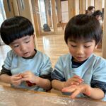 製作後は少しだけ園庭に行って遊びました。寒さなんかへっちゃらなお友達、『狼さんごっこ🐺』をしてたくさん逃げて体を動かしたり、砂場で大きな山をみんなで作って登ったり滑ったりしながら思いっきり楽しんでいたお友達でした😀うさぎこあらきりん🐰🐨🦒