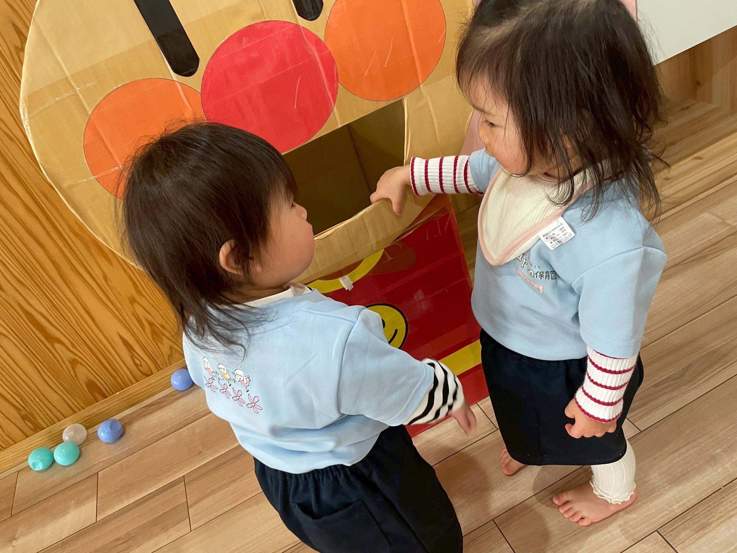 今日は節分の制作をしました👹顔のパーツを自分で考えながら貼ったり、マーカーでお口を描いてかわいらしくて楽しい豆箱が出来上がりましたよ✌️保育園に鬼さんが来るには準備OK!になりました😂✨その後はトミカ遊びをしました🚗ロードマットを夢中で繋げたり、大小いろいろな車種の車に興味を持って自由に走らせて楽しそうでした😆♫働く車の歌が流れるとノリノリでトミカドライブを満喫していました💕ぱんだ🐼ぐみ