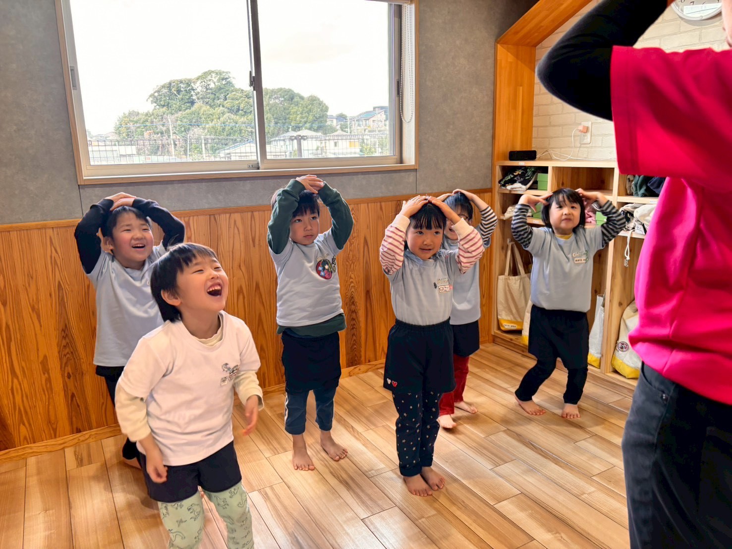 今日は図書をした後、英語教室がありまし🔤。まず、グッドモーニングのご挨拶から始まりました。大きな声で挨拶をしていましたよ♪ 最初にABCの歌遊びをして少し体を動かし、そのあとは簡単なゲームをしました。洋服やズボンなどの身につける物の絵本をみて同じ絵お探して絵あわせゲームをしました。 色々な名前を覚えていくことができましたよ😊