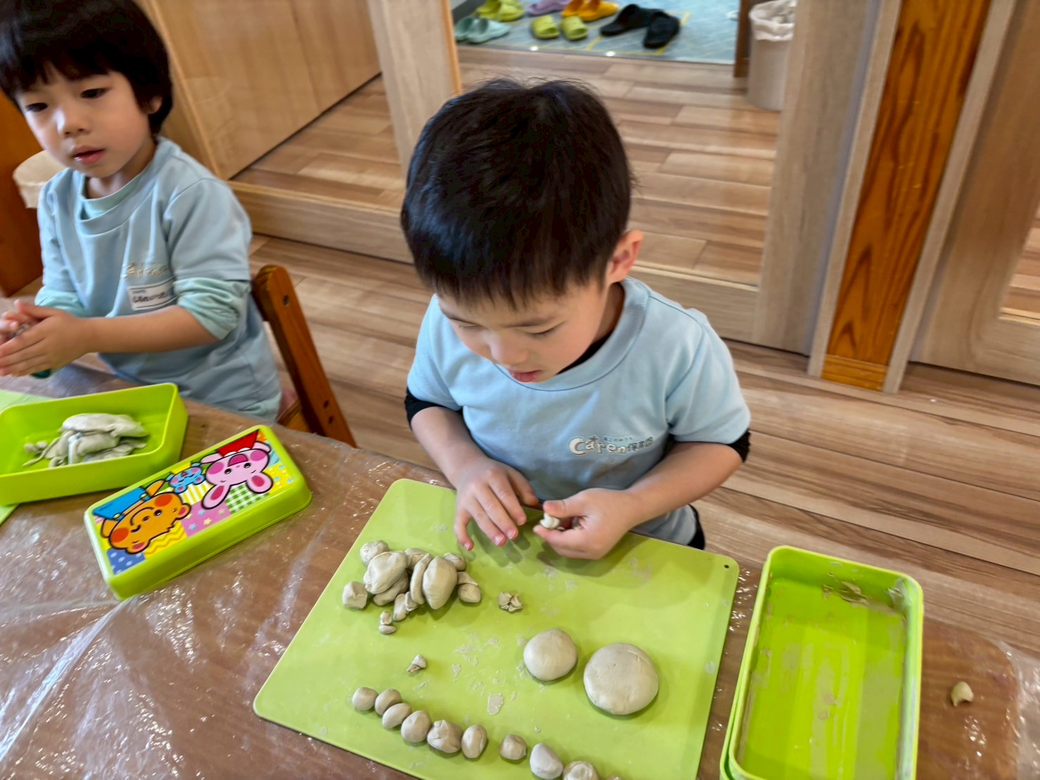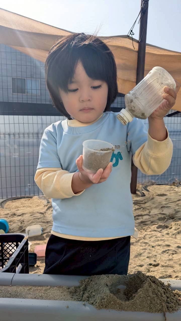 その後はゆったりお外で遊びました🌞暖かくて、お友達と走り回ったり、砂場でアイスクリームを作って遊んでいました🍦✨