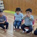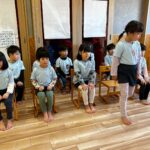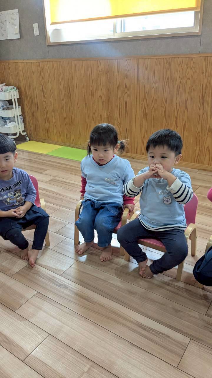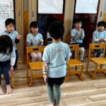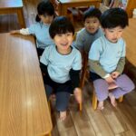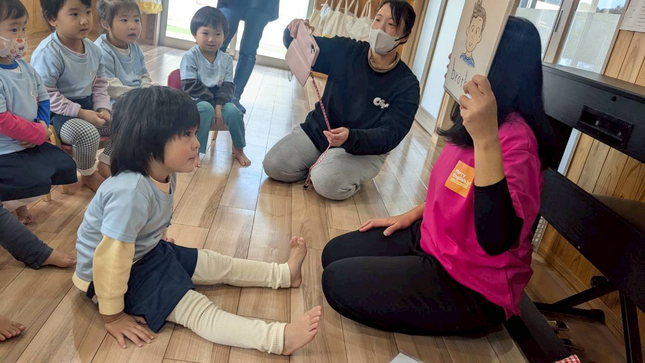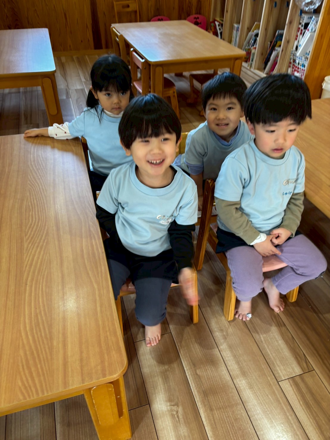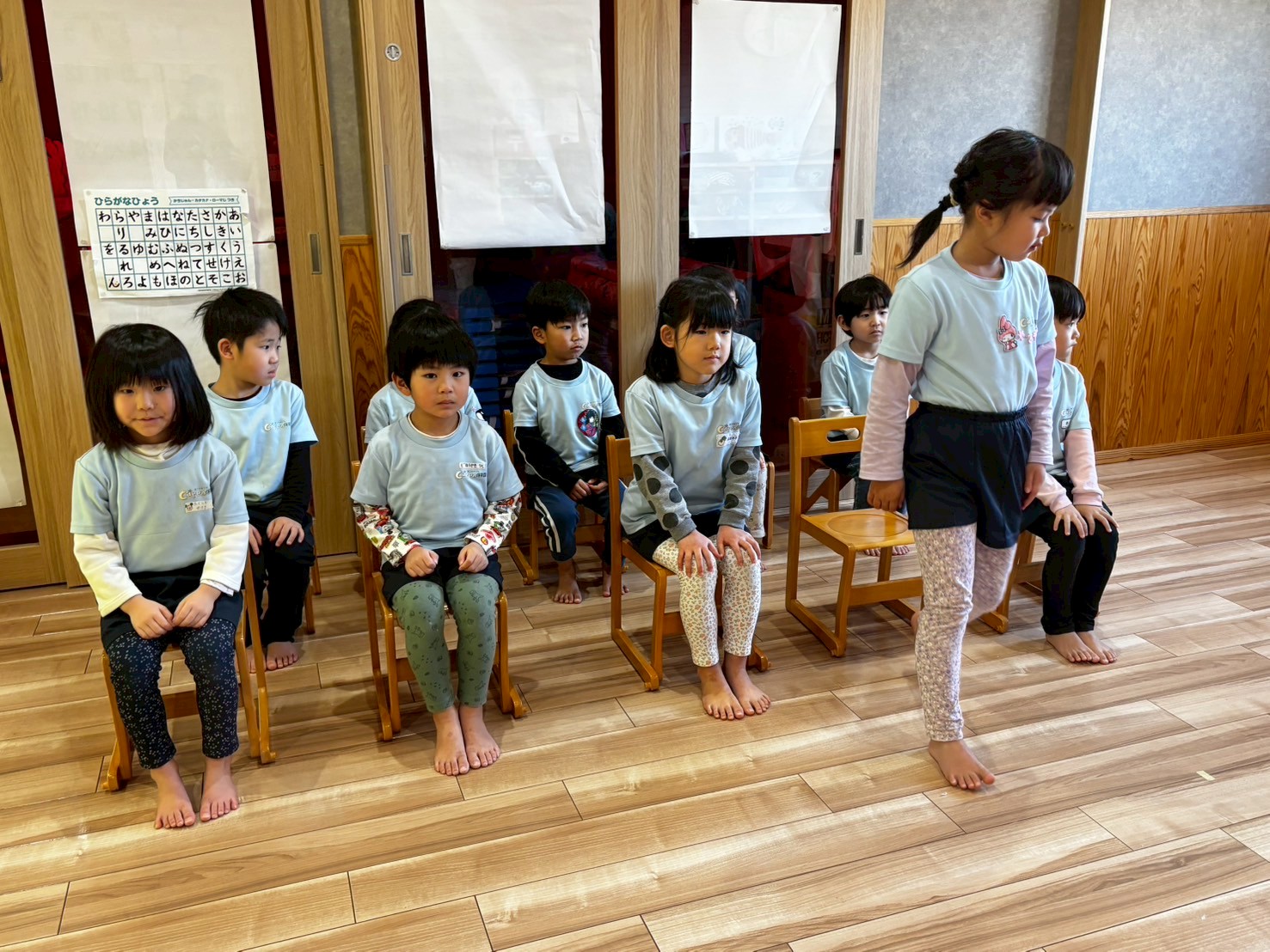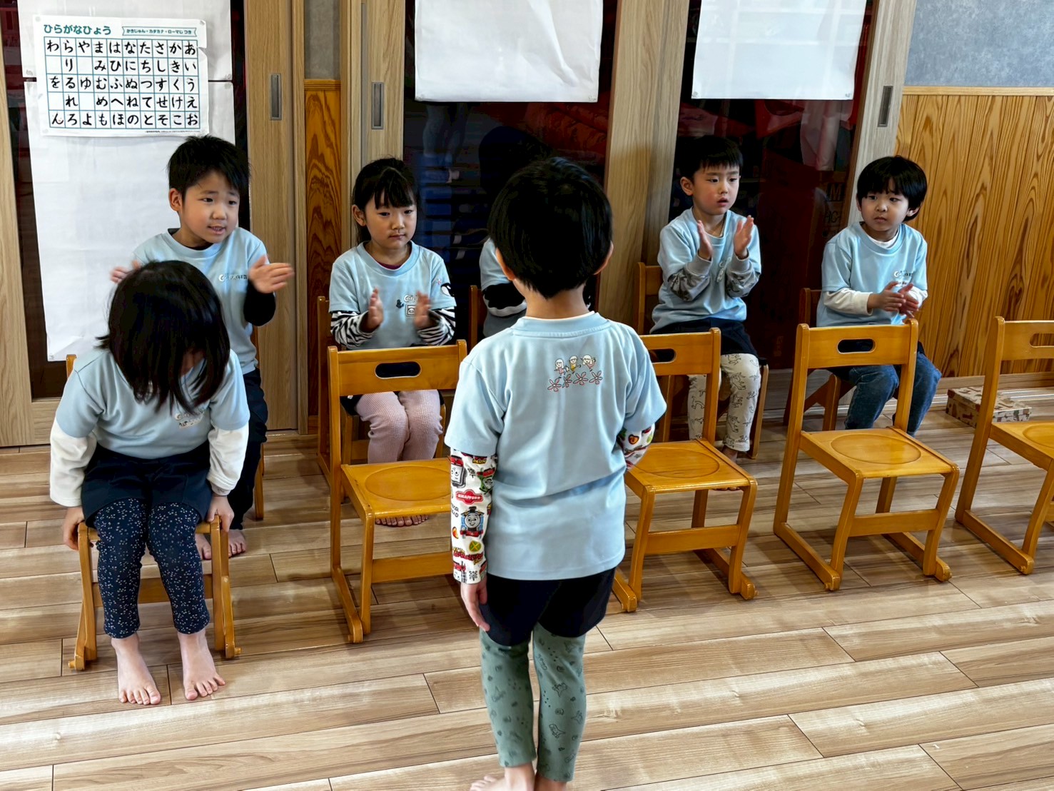 英語の待ち時間には、うさぎ組さんがしりとりを楽しみ、保育者のジェスチャーをヒントに言葉をつなげていました🐰✨
