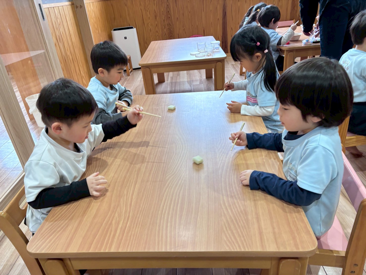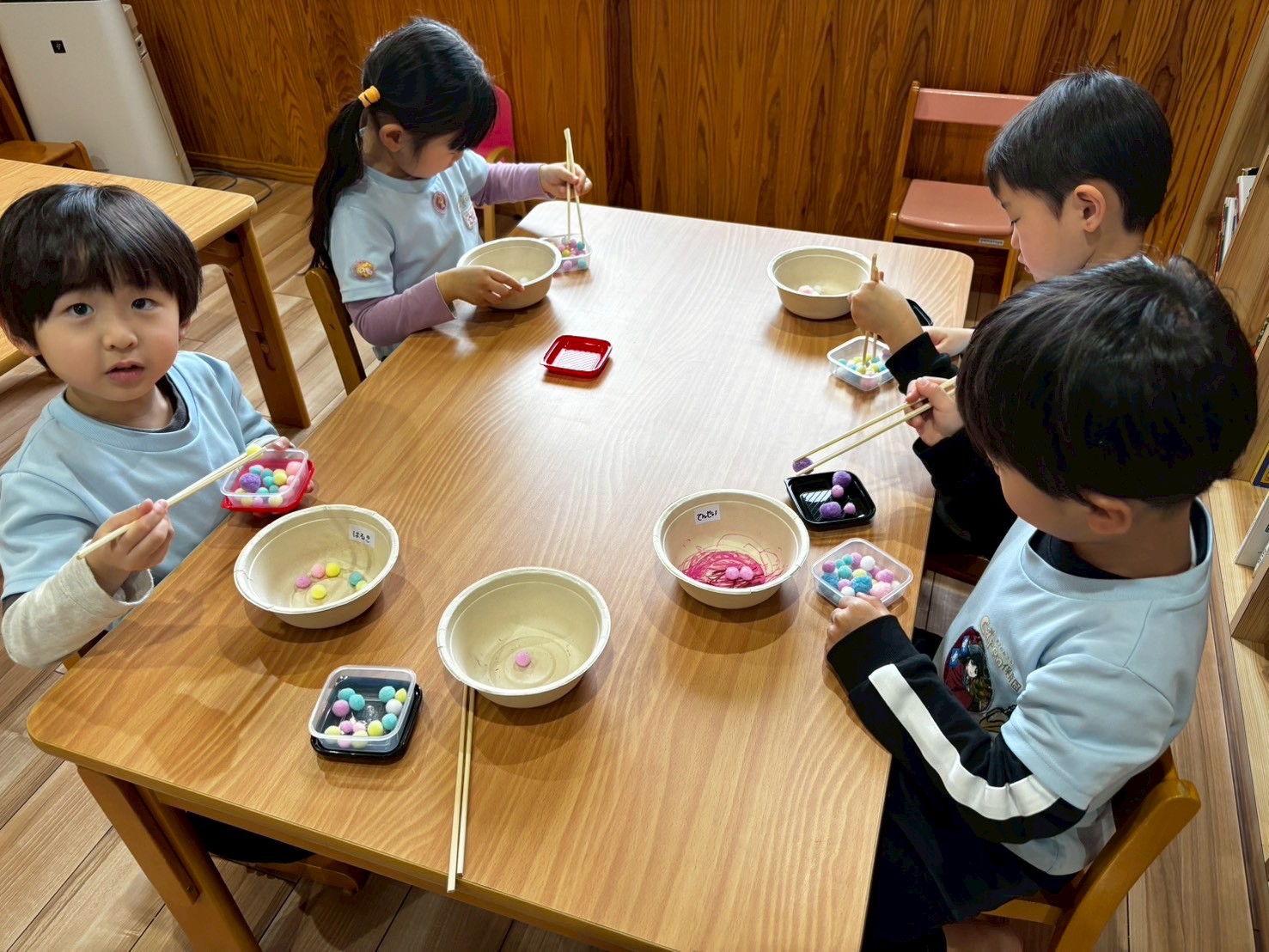正しい箸の持ち方を確認して、スポンジや小さなビーズまでお皿うつしをすることが出来ました💕