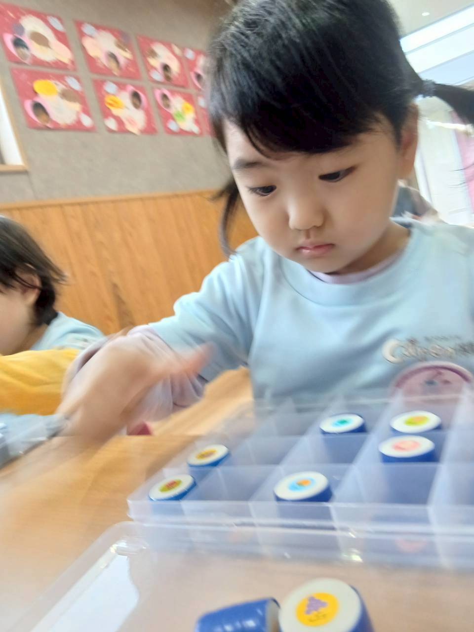 鉛筆✏️の練習の間はジスターや絵合わせパズル、IQブロックなどいろいろな室内のおもちゃをたくさん楽しんでいましたよ冠👑を作ったりボール🏐を作ったりといろいろな遊びに夢中なぱんだ🐼組さんでした。