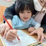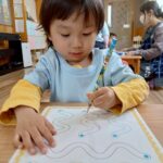 前回は直線の練習をしたので今日な波線、丸、三角、四角を書きました。鉛筆✏️の持ち方はみんなほとんど上手になってきたお友達、練習を重ねながら筆圧もしっかりできるようにいろいろなプリント📃を取り組みたいと思います😃