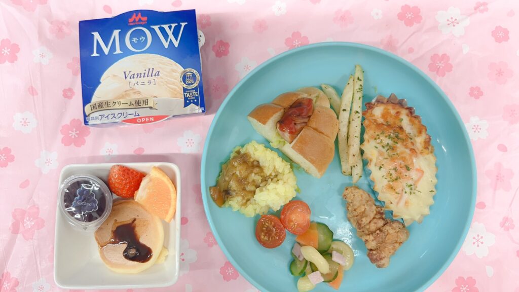 その後ポピードリルのさんすうを勉強🕰️し、足し算や時計、最後は数え方を頑張りました✨そしてみんなが楽しみにしていたお別れバイキング🍽️💓ミニオンカレーや唐揚げ、ポテトにグラタン、最後はアイス🍨が入ったパフェに「しあわせ〜❤️」と美味しいご飯にみんな大喜びでした🤤❤️