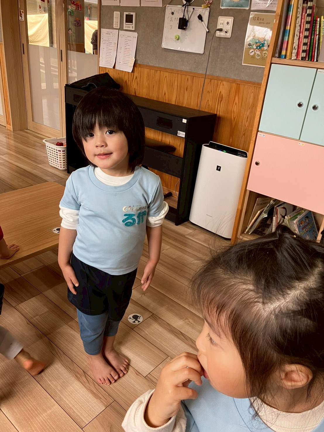 靴下や靴を自分で履けるお友だちも増えてきたりす組さんですが今後も継続して取り入れ、靴下や靴の着脱につながる指先の力や集中力を育んで行きたいと思います☺️