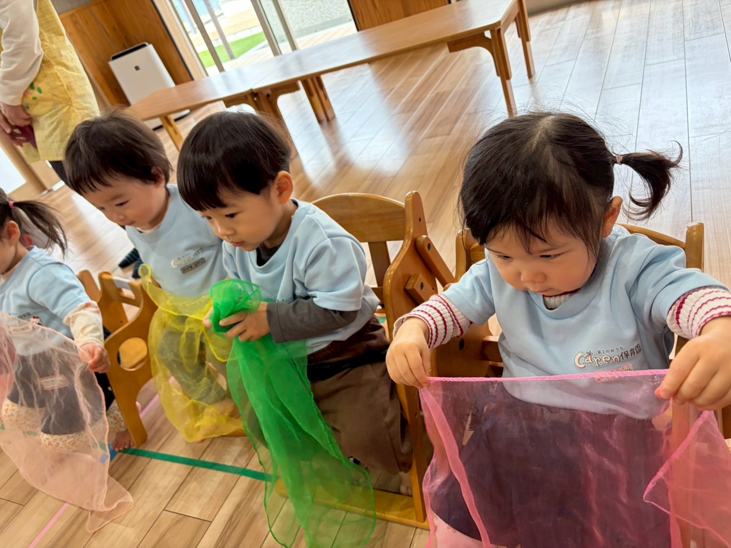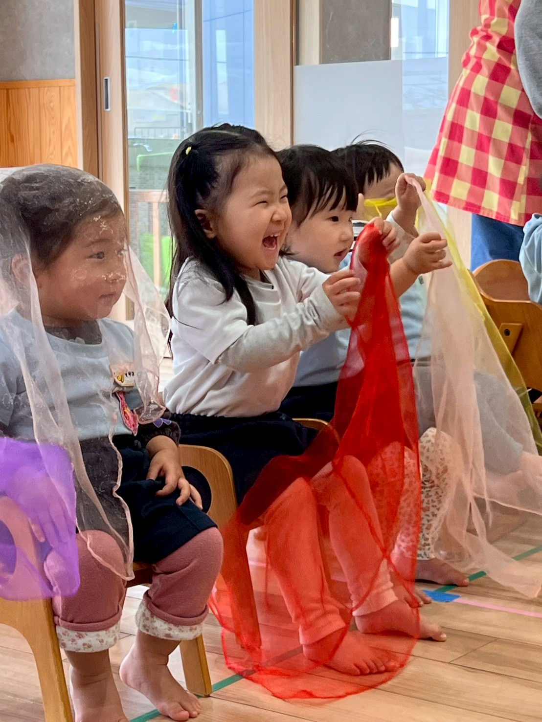 きりん組はリズム遊びや大きなカラースカーフを使いながら表現することを楽しみ、のびのびと体を動かしていました🌟