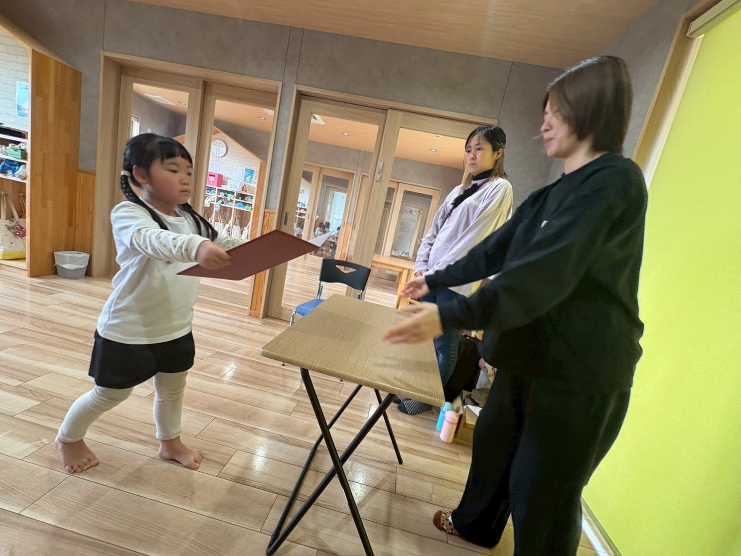 卒園式の練習では、本番を意識して証書の受け取りや園長先生の話を聞く練習を行いました。普段とは違う雰囲気に少し緊張しながらも、しっかりと取り組むことができました🌸