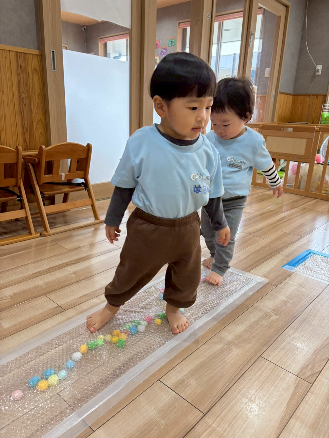 プチプチの感触も楽しいようで何度も歩いていましたよ😆