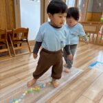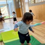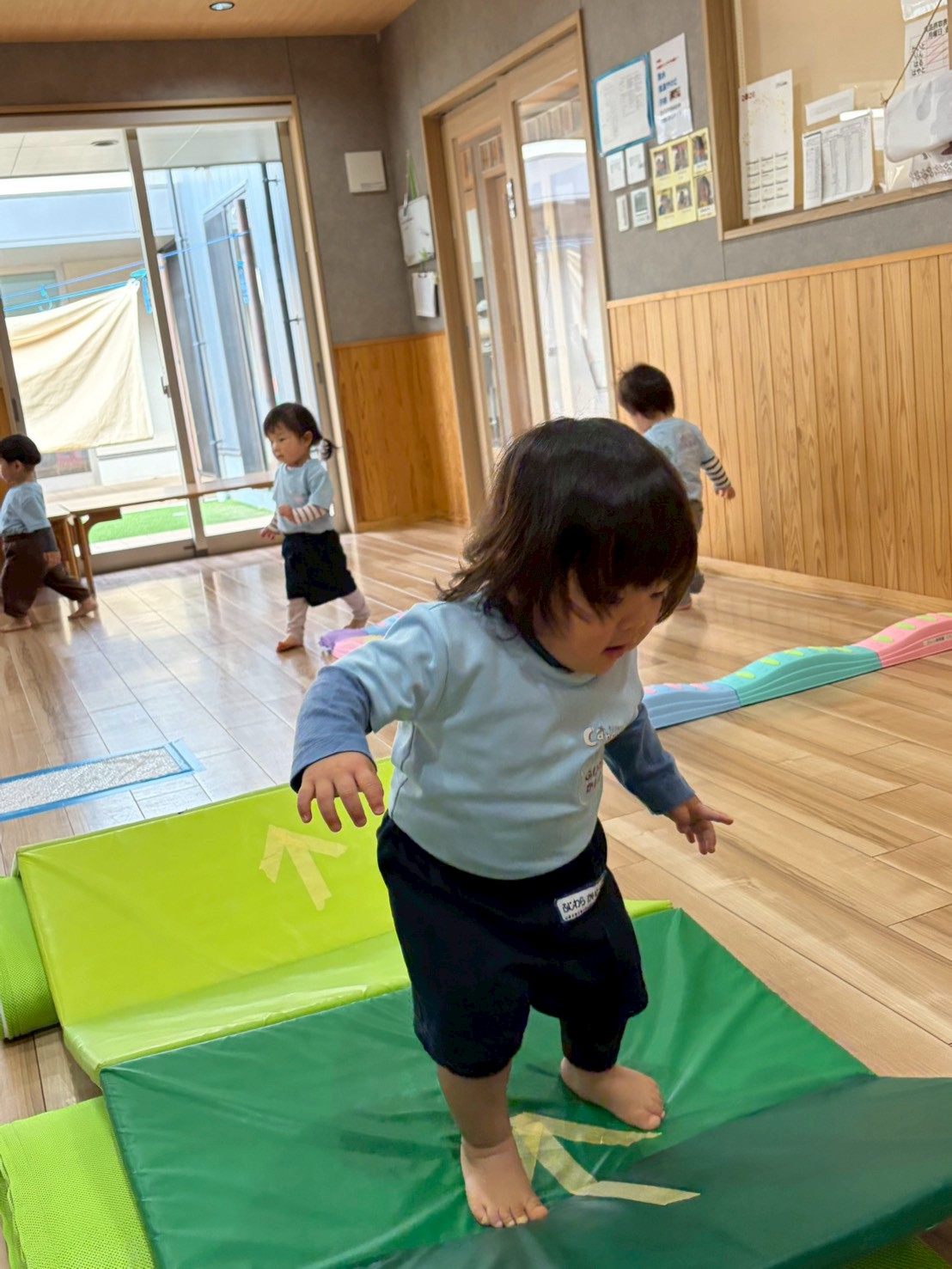 今日は室内遊びでマットのお山やぶちぶちの道、平均台の橋で遊びました😄