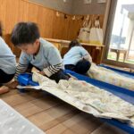 手をしっかり使って手繰り寄せる動きは少し難しい様子でしたが、テープを1本にするとコツを掴み、集中して取り組む姿が見られました😊
