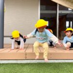 それから園庭に出て遊びました❣️久しぶりに裸足で外に出て、ちょっと不思議な感覚だったようですが、思いっきり駆け回って外の風に当たって楽しみましたよ😊