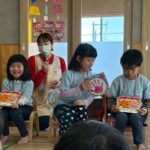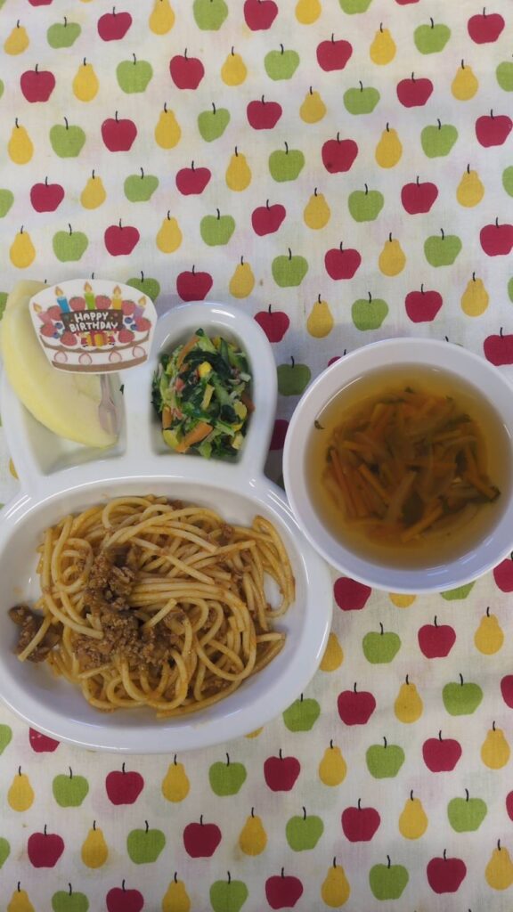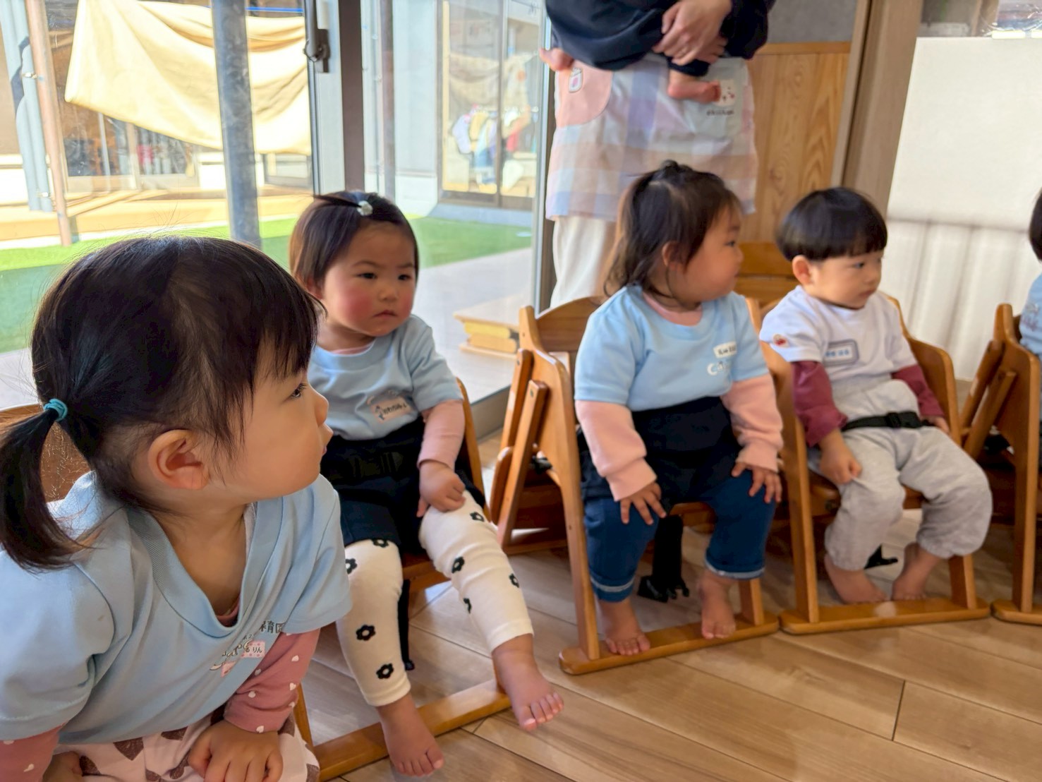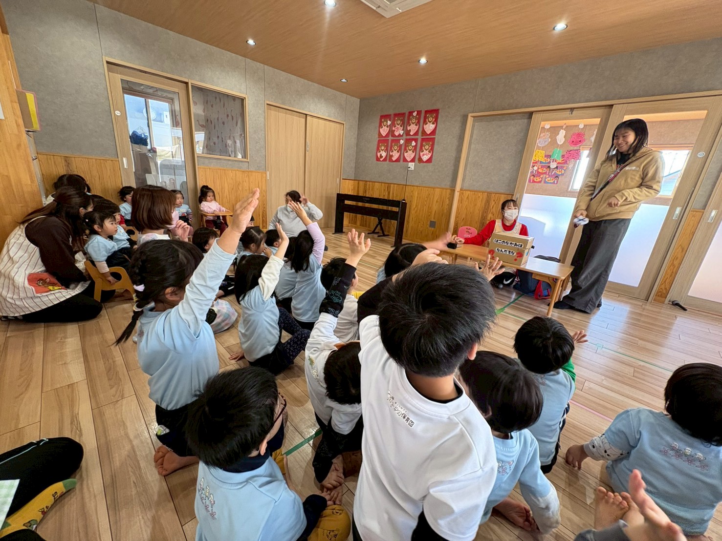 とても温かい雰囲気の中でお祝いすることができましたよ!その後は先生の出し物「箱の中身はなんだろな?」🎁✨いろいろな音や声を聞きながら、「あ!」「あんぱんち!」と声を出して当てようとする姿が見られ、楽しそうに参加していました♪