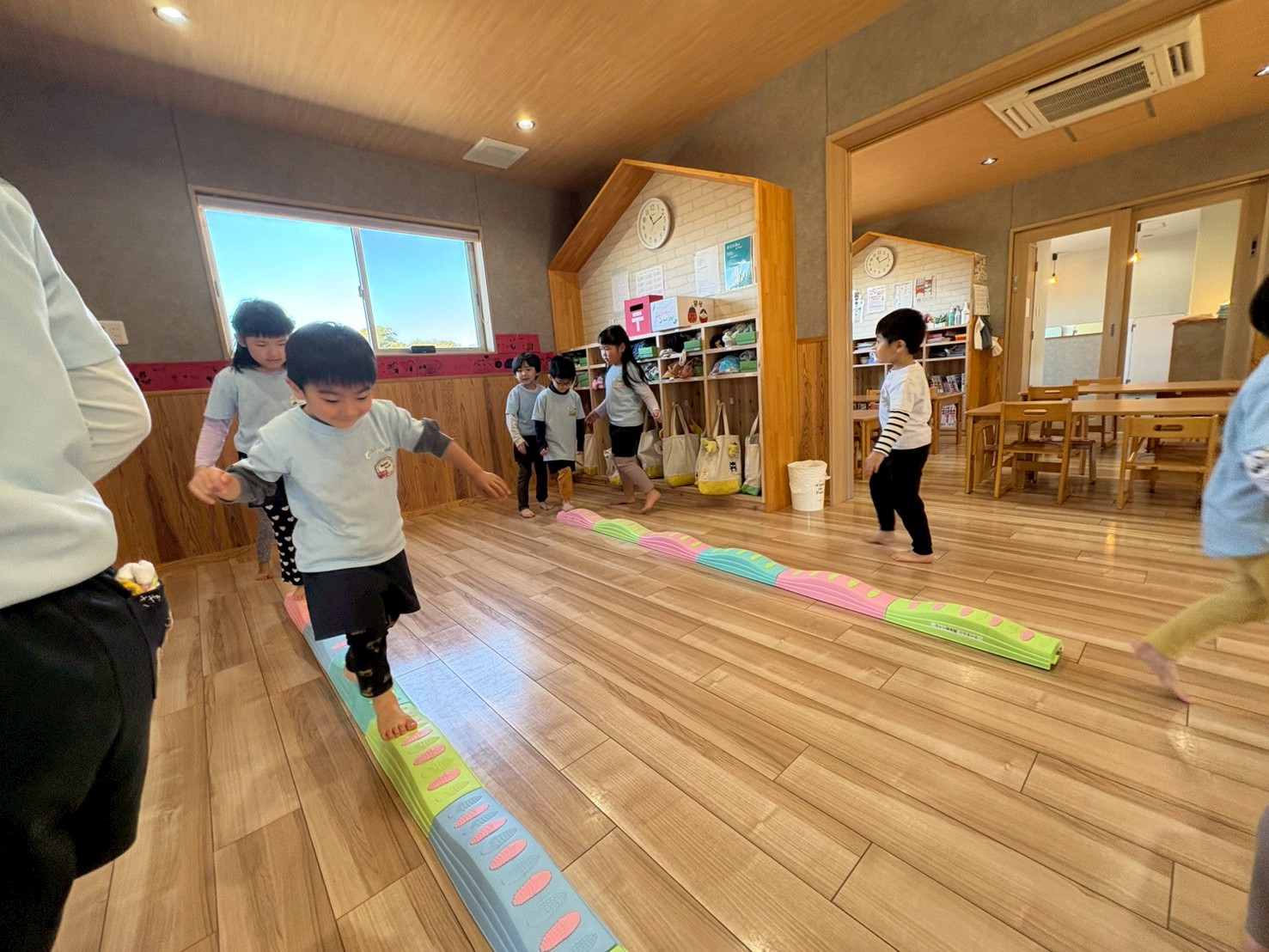 その後室内でサーキット遊びをしました👊🏻✨トランポリン、平均台、鉄棒を出して約束事を伝えて自由に遊び回りました🤭体操教室で練習した鉄棒をしたり、逆上がりを練習するうさぎこあら組もいました💕