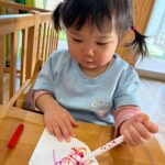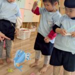 製作の後は、ひよこ組・りす組さんと一緒にくりえいと北公園の広場までお散歩に行きました。りす組さんのお手本になりながら一緒に誘導ロープを持って歩き横断歩道ではしっかりと手を上げて🖐️渡りみんなのお手本になれたお友達でした👏。