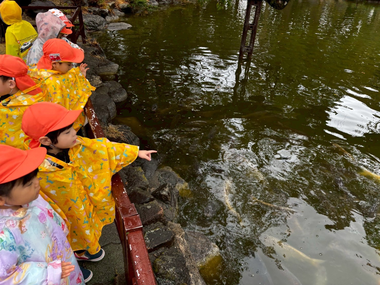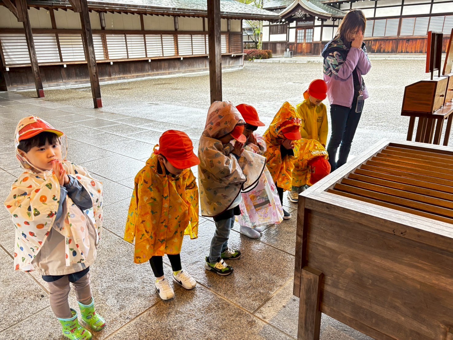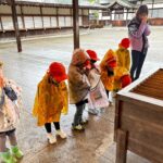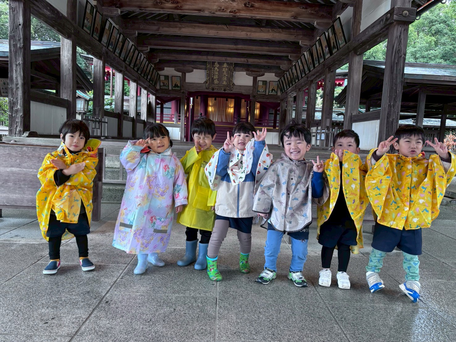 まず、カッパを着て降りて宗像大社でお詣りしました✨途中、池の鯉を眺めたりと参道も歩いたりして、カッパ姿で並んで歩く子ども達をみて「可愛いー🩷」と言われていましたよ🥰
