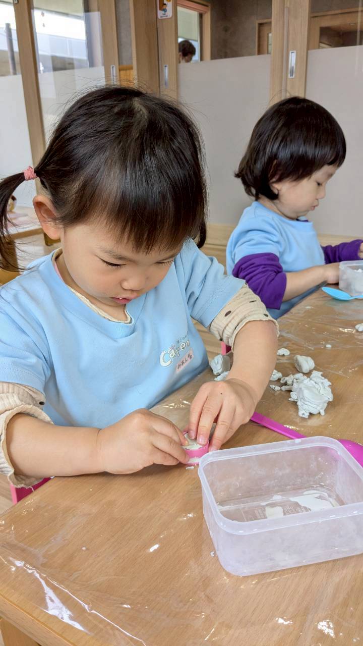 粘土遊びが大好きなぱんだ組さん、最後は少しだけ積み木遊びもし、今日は色々なおもちゃでたくさん遊ぶことができました😊